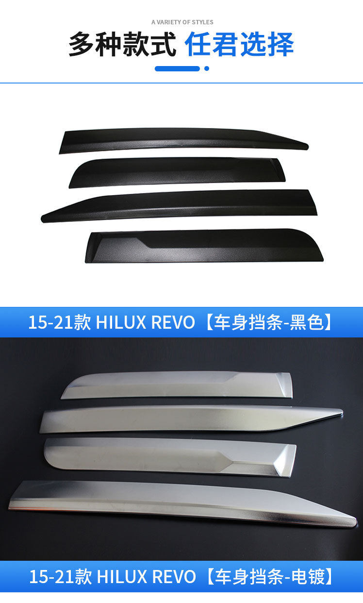 4pcs ABS Side Doors Body Side Molding Trim Body Cladding for Toyota HILUX REVO 2015-2021