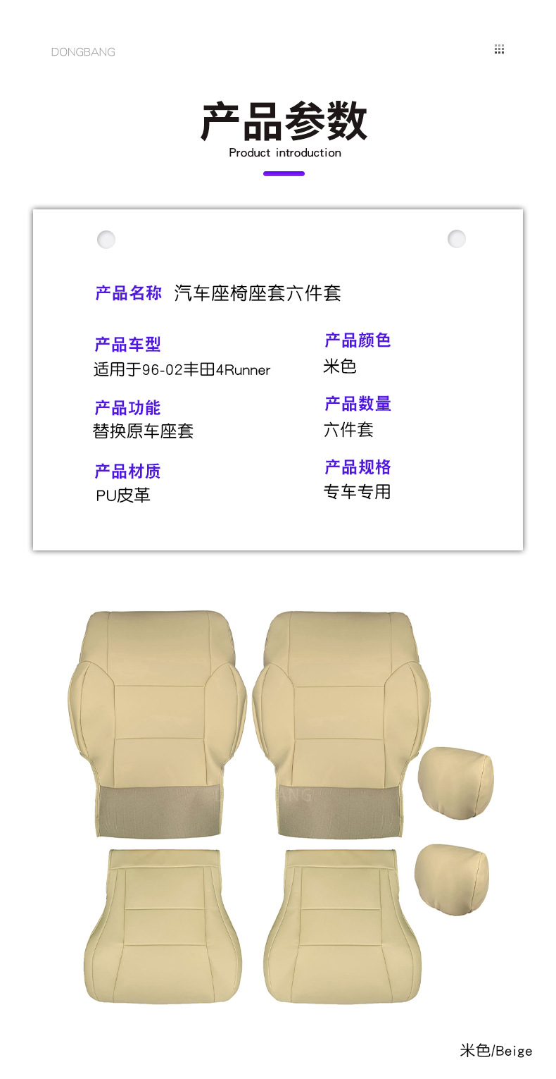 4pcs Beige Driver Passenger Front & Rear Seat Cover Top Headrest Cover for 1996-2002 Toyota 4Runner