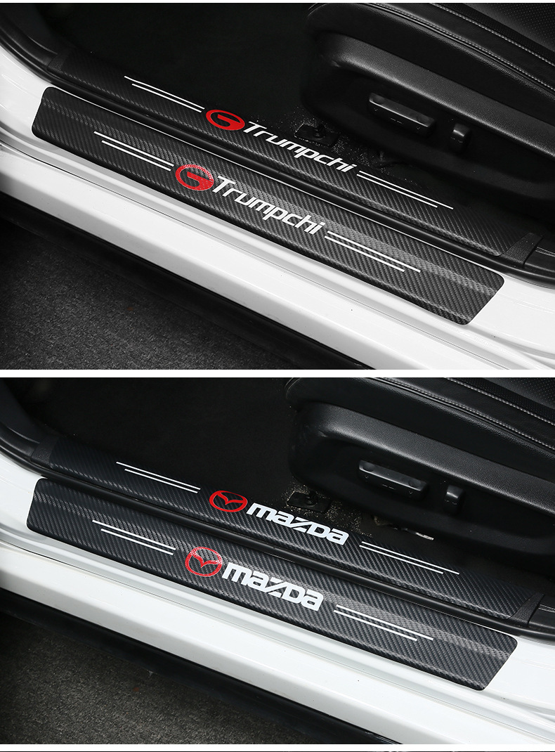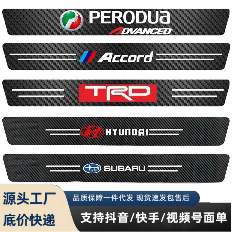 4pcs Carbon Fiber Pattern Car Door Sill Scuff Plate Protector Sticker for Perodua Accord TRD Hyundai Subaru Universal Fit