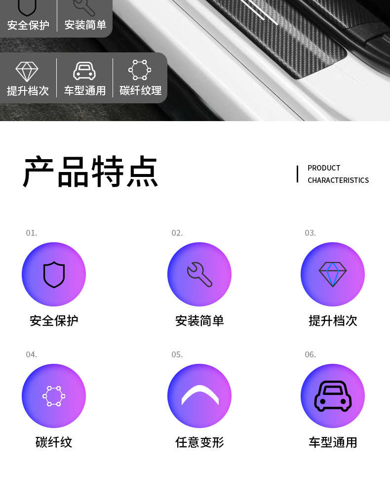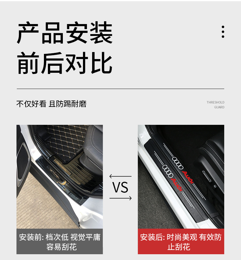 - Complete Package: Includes 4x Carbon Fiber Pattern Car Door Sill Scuff Plate Protector Stickers, exactly as pictured. Please verify fitment details before purchasing.