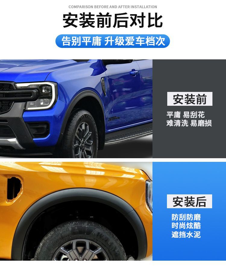 - Direct Fitment: A perfect replacement for factory fender flares. Compatible with Ford Ranger 2022-2023 models. Specifically designed to match the original contours of your vehicle’s wheel wells.
