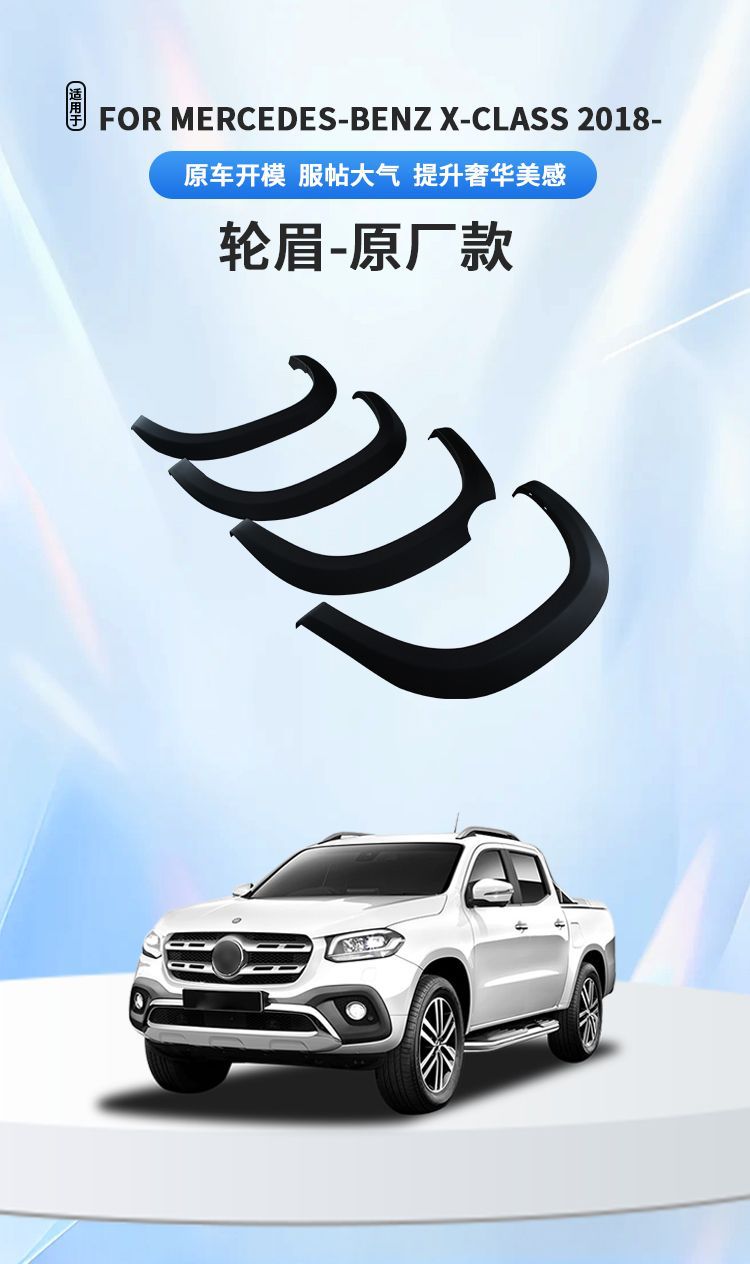 4pcs Fender Flares Wheel Arch Trim for Mercedes-Benz X-Class 2018- Black ABS