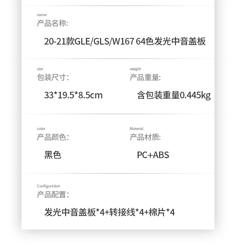 4pcs LED Luminous Speaker Cover Mid-Range Speaker Grille for Mercedes-Benz GLE/GLS W167