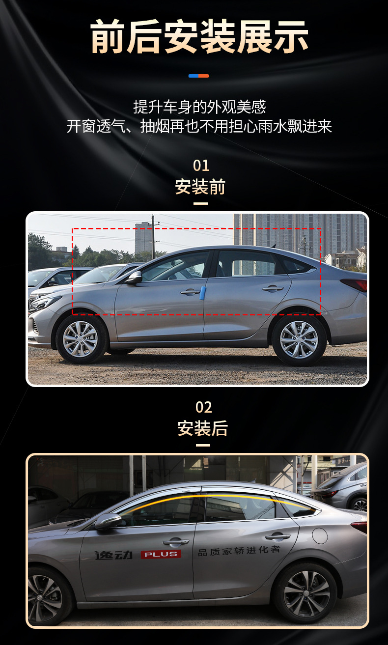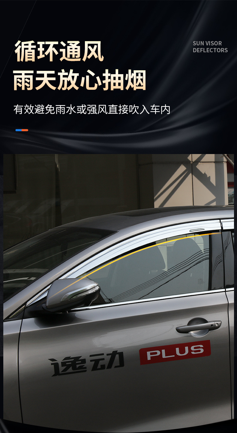 - Direct Fitment: A perfect replacement for your factory window deflectors. Compatible with Changan Eado Plus 2018, 2019, 2020, 2021, 2022, 2023 models.