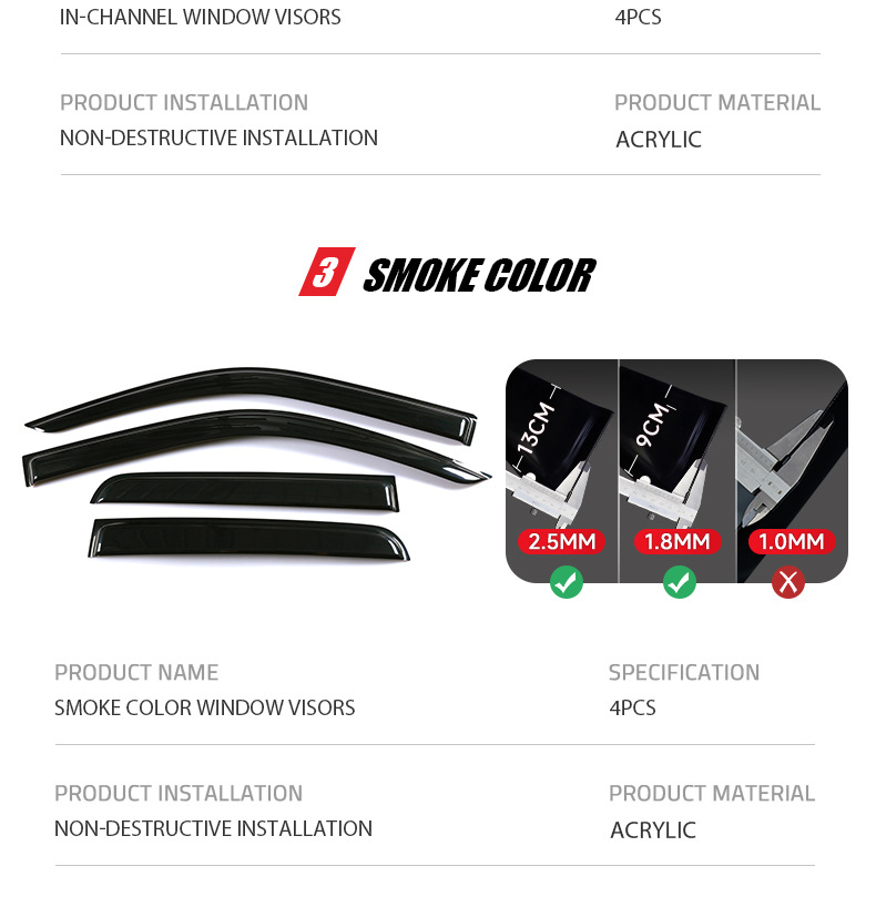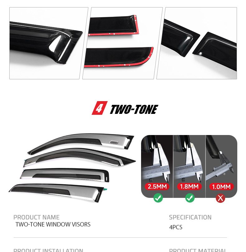 - Complete Package: Includes a set of 4 window deflectors (2 front, 2 rear) for all four doors, exactly as pictured. Please verify fitment details before purchasing.