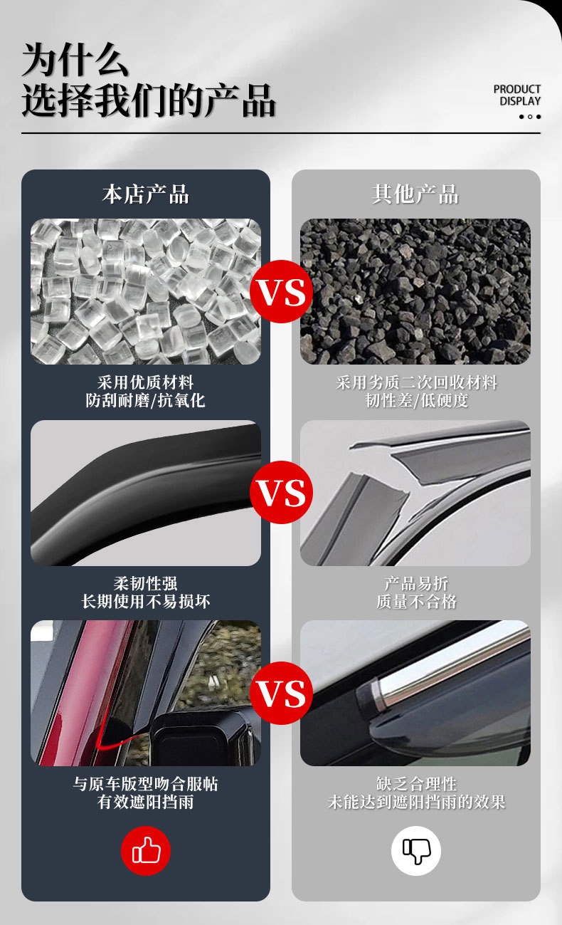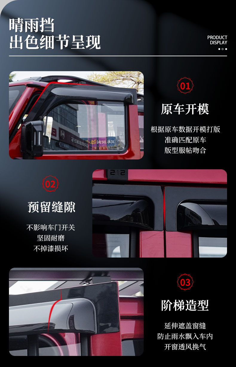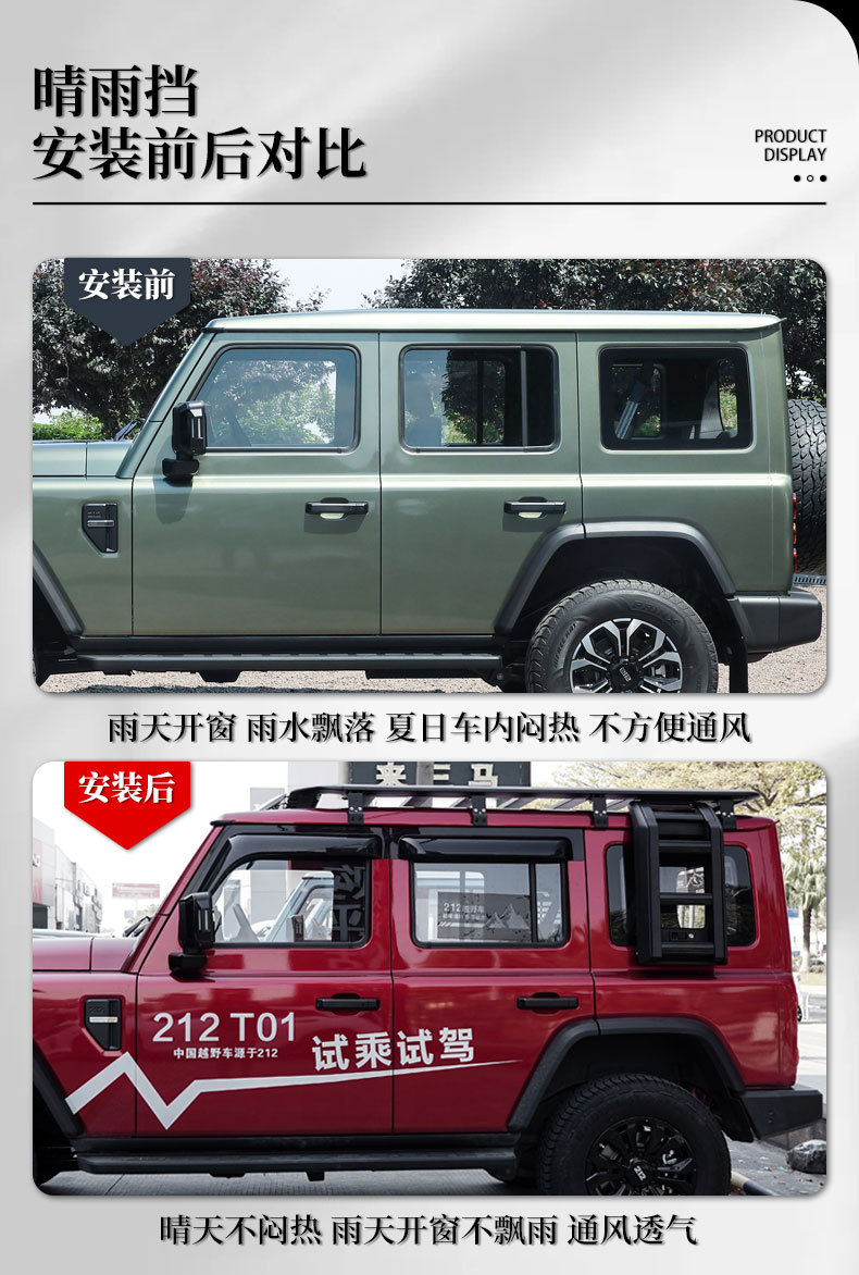 - Performance-Driven Design: Designed to deflect rain and wind, allowing for window ventilation without direct exposure to elements, improving driving comfort.