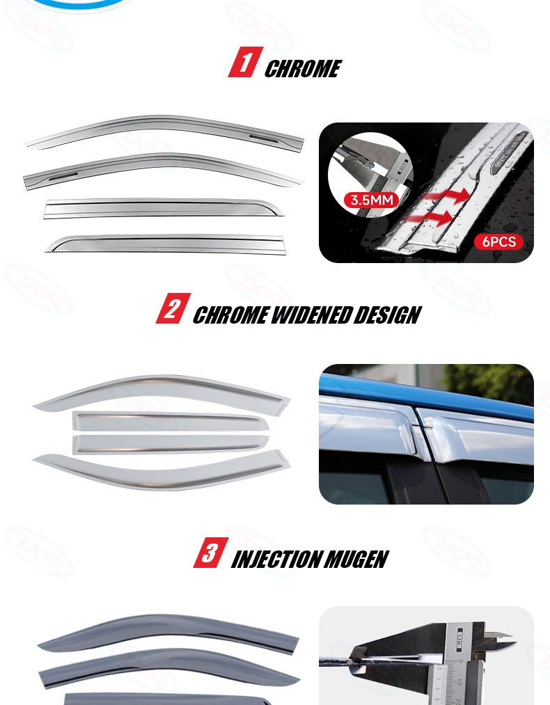 - Performance-Driven Design: These window visors improve air circulation while driving in rainy conditions, reducing fogging and wind noise, as well as protecting from sun glare.