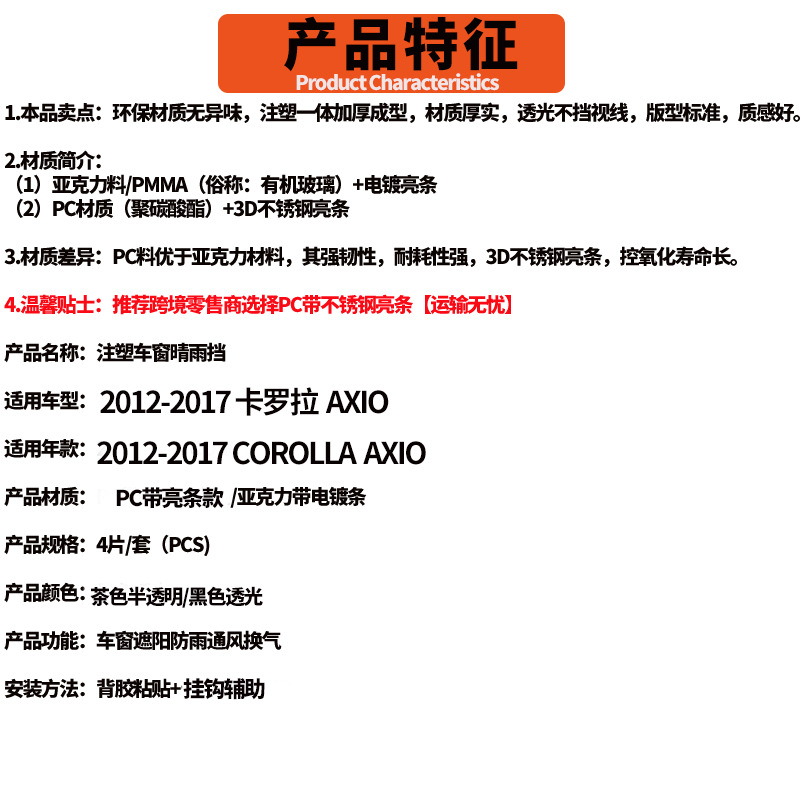 4pcs Window Visors Sun Rain Guard Deflector for Toyota Corolla Axio 2012-2017