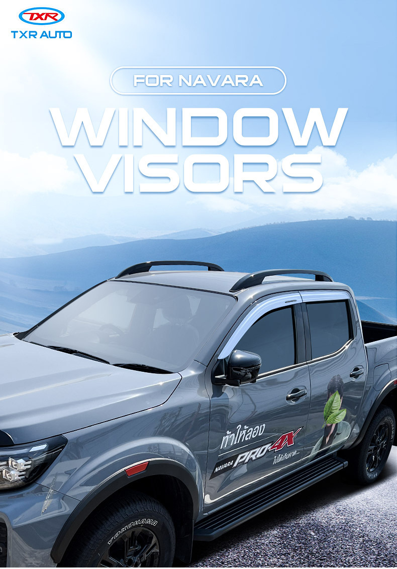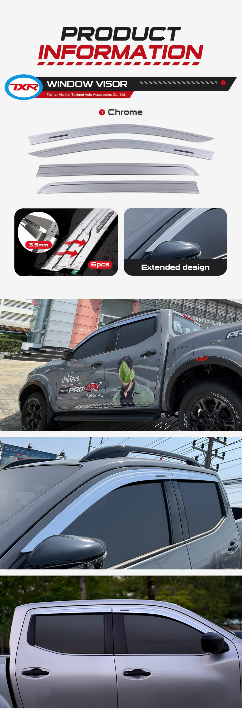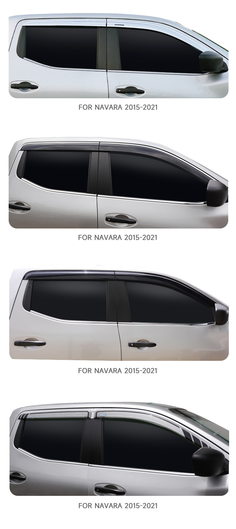 4pcs Window Visors with Chrome Trim for Nissan Navara NP300 Frontier 2015-Current