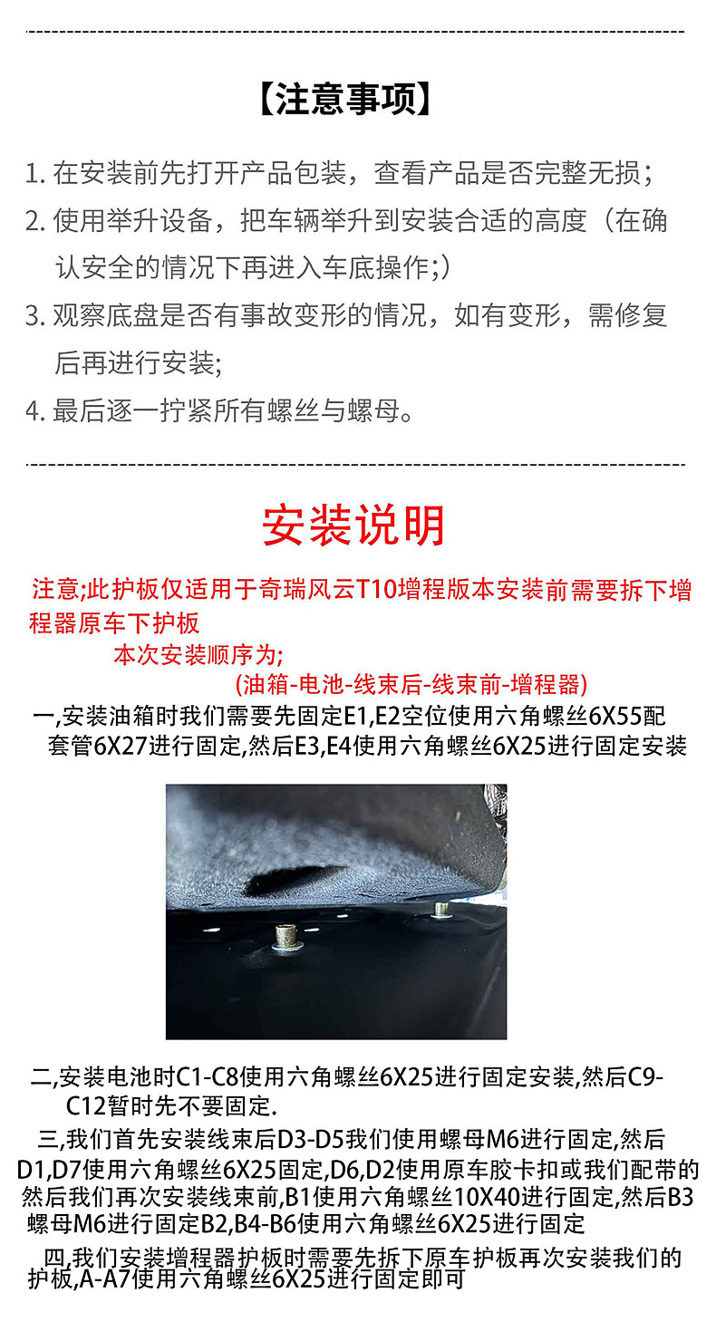 5-Piece Underbody Armor Skid Plate Kit for 2024 Fengyun T10 Hybrid SUV