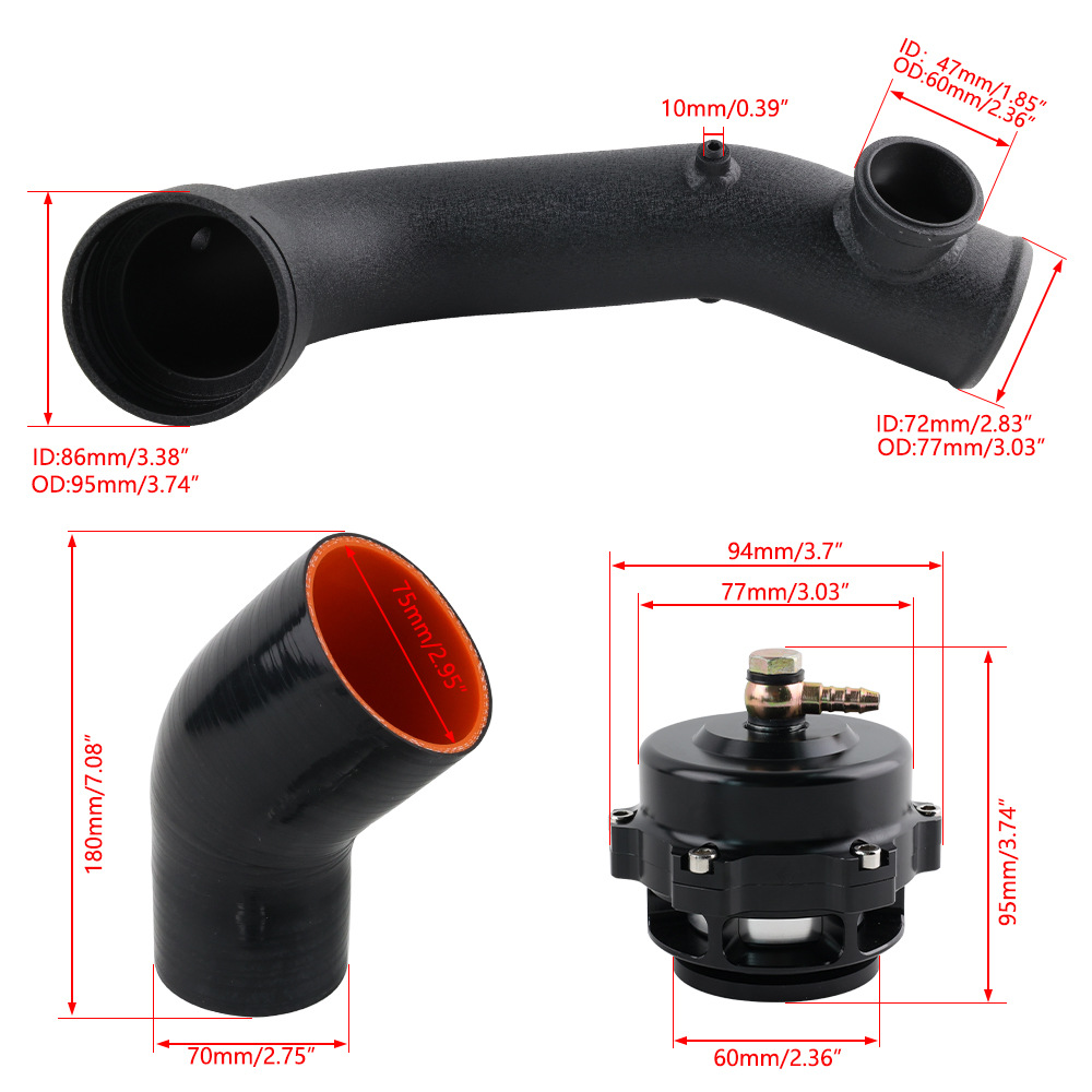 • [Enhanced Performance & Stealthy Black Finish] Improve airflow and reduce turbo lag with a larger 3-inch diameter pipe and a 50mm blow-off valve, all while complementing your engine bay with a sleek, powder-coated black finish.