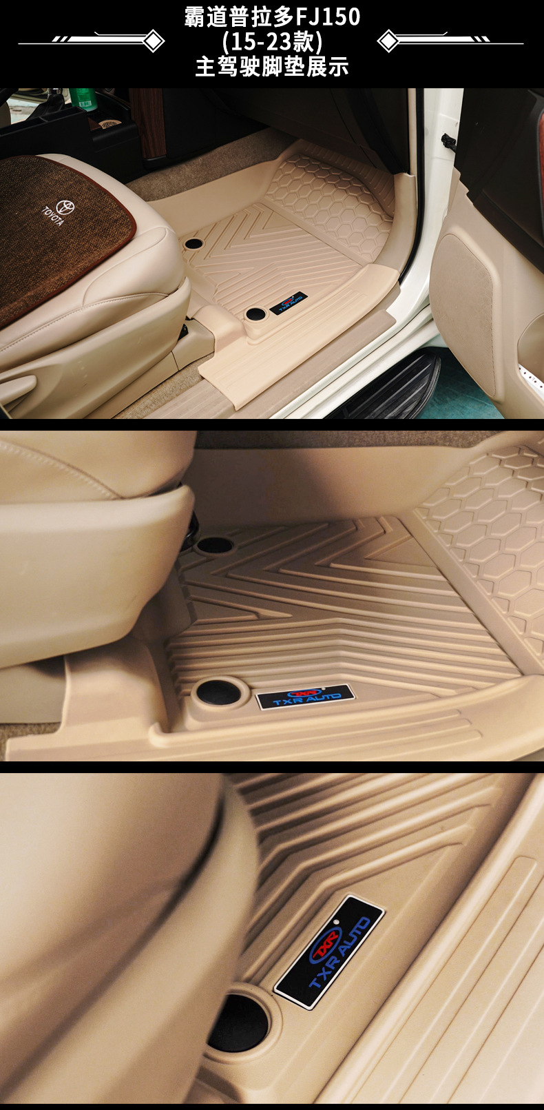 5D TPE Floor Mats for Toyota Prado Land Cruiser 150 2010-2023 Beige 5-Seater Left Hand Drive