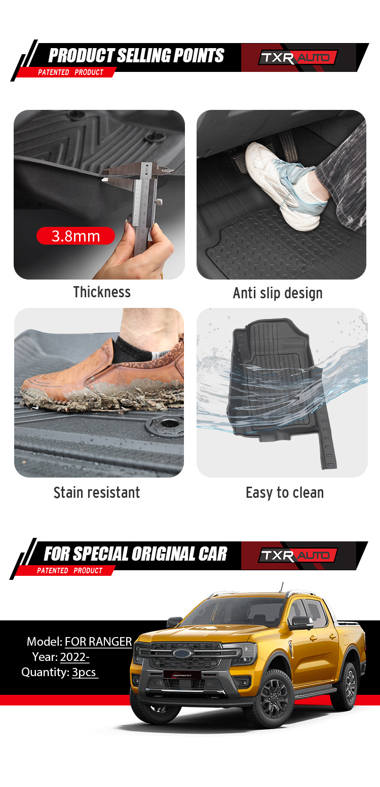 5D TPE Injected Car Floor Mats for Ford Ranger 2022-Present