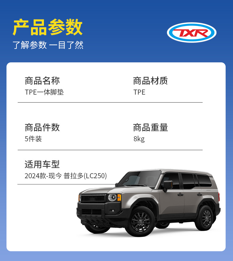 5D TPE Injection Molded Floor Mats for Toyota Prado LC250 2024-Present