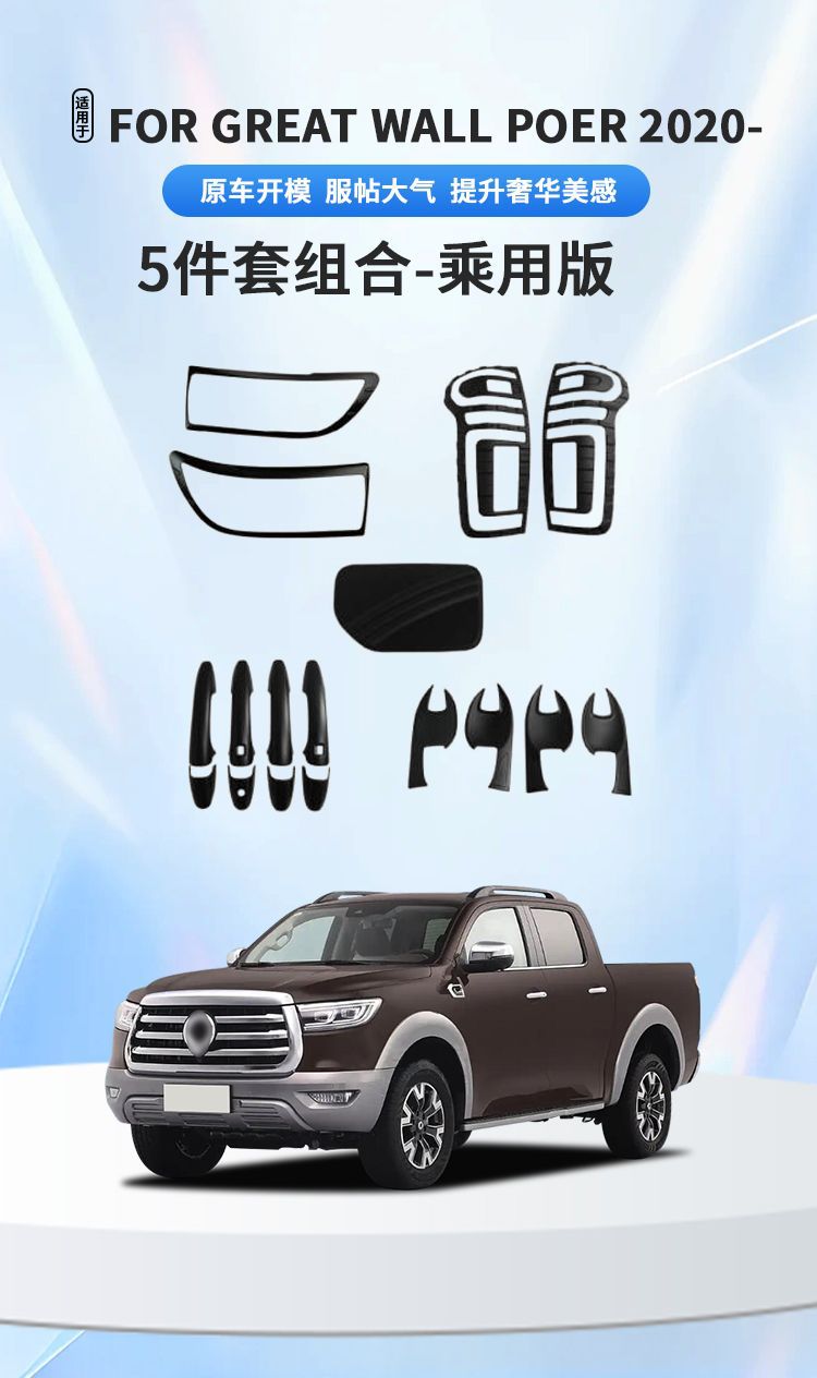 5pcs ABS Black Exterior Accessories Kit for Great Wall Poer 2020-2021 Passenger Version