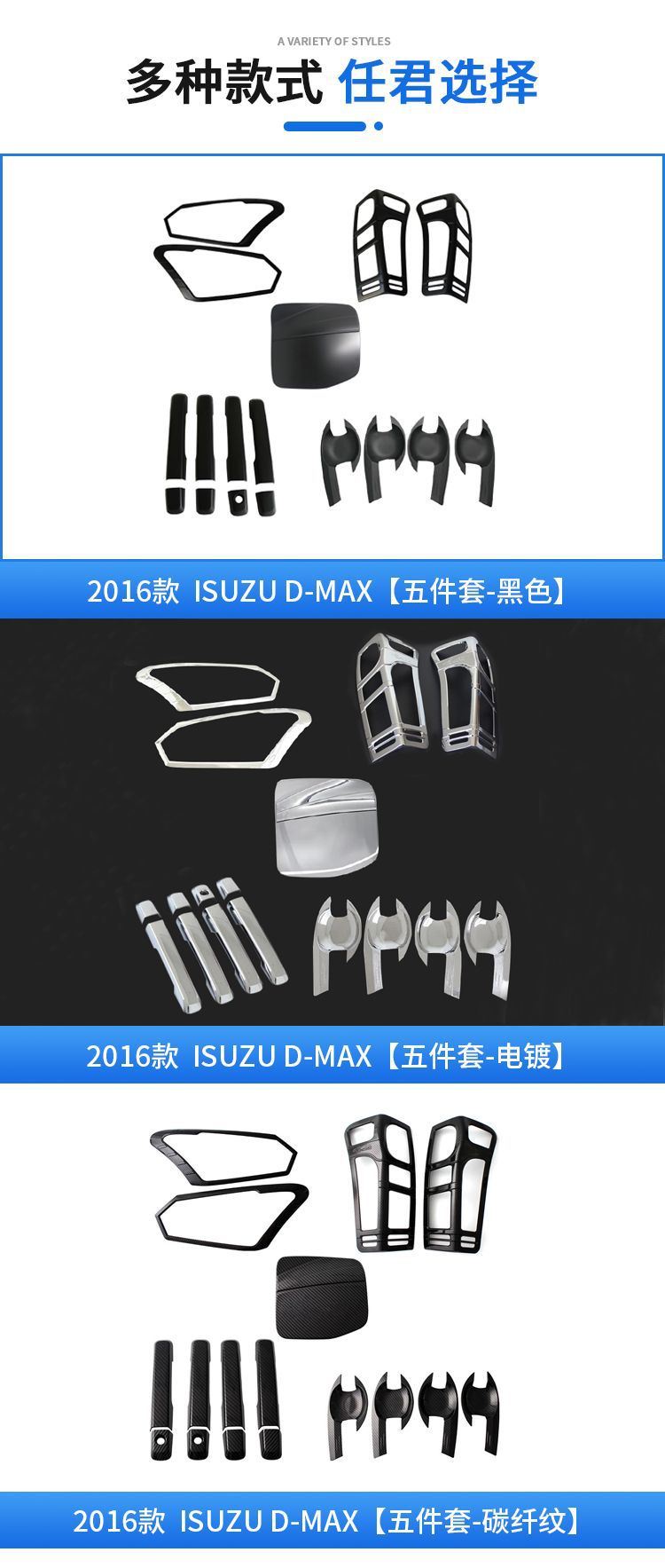 5pcs ABS Exterior Trim Kit for ISUZU D-MAX 2012-2018