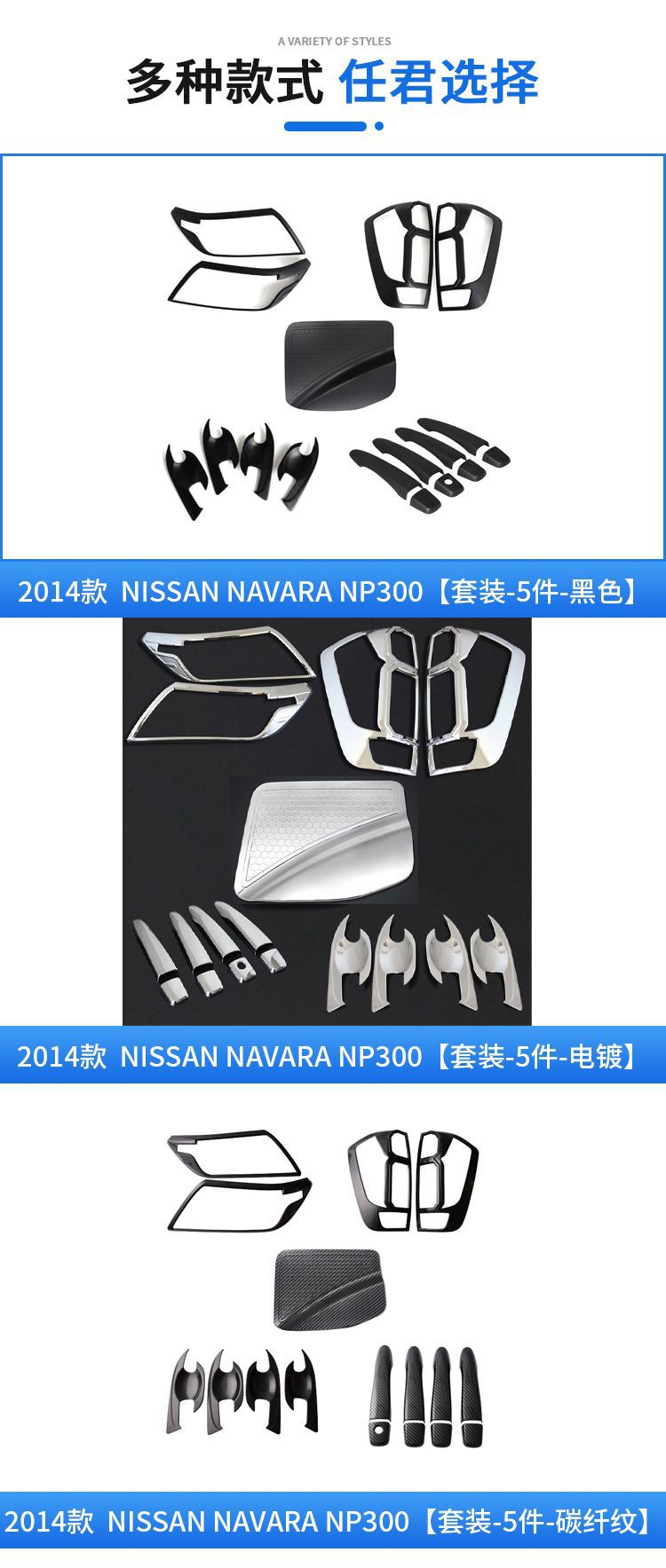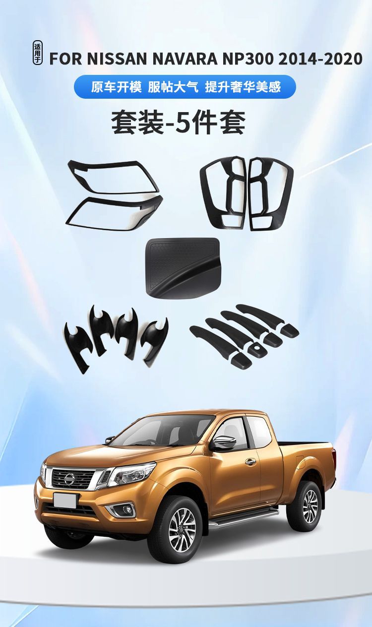 5pcs ABS Headlight Cover Taillight Cover Door Handle Cover Fuel Tank Cap Kit for Nissan Navara NP300 2014-2020
