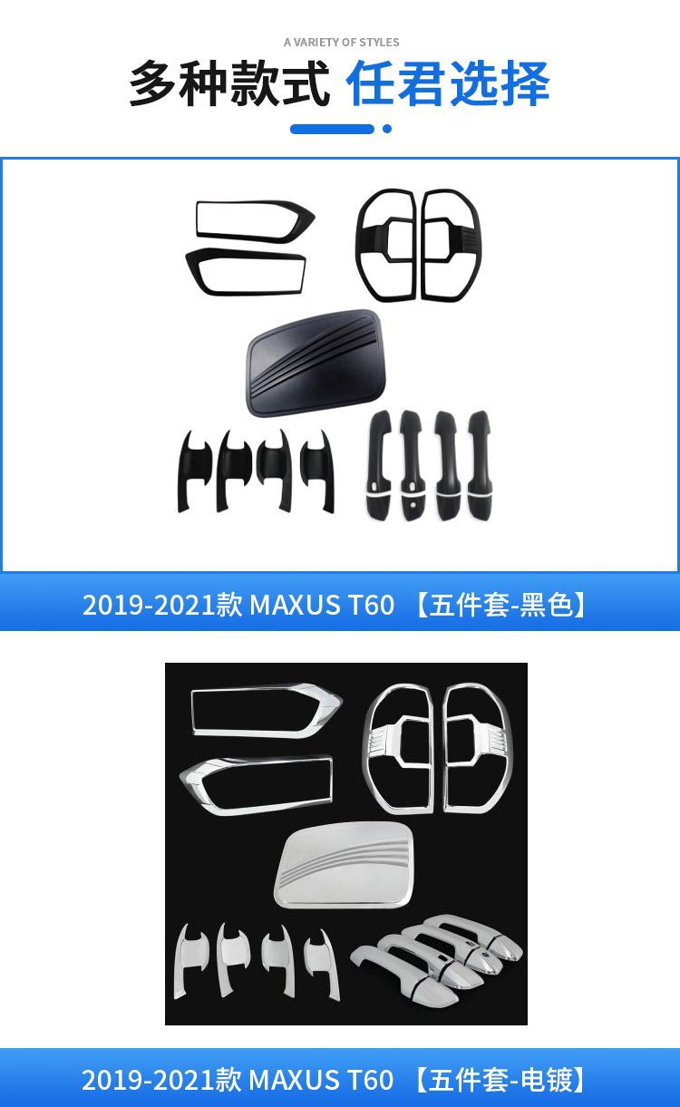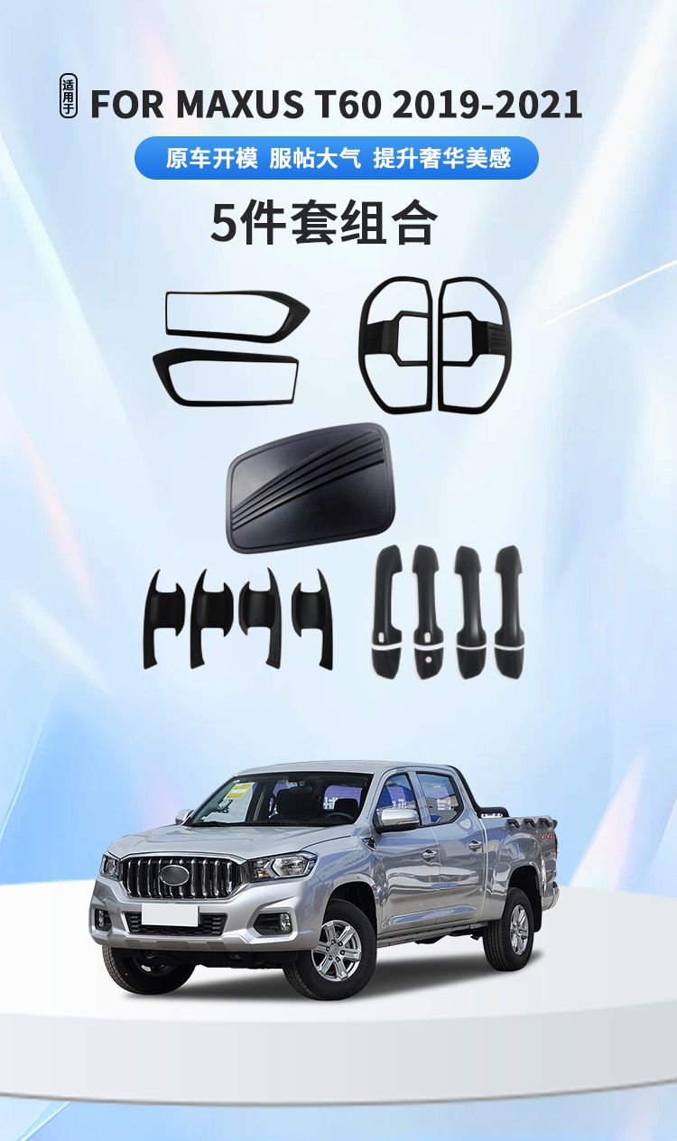 5pcs Black ABS Front Rear Light Cover Door Handle Bowl Fuel Tank Cap Trim for MAXUS T60 2019-2021