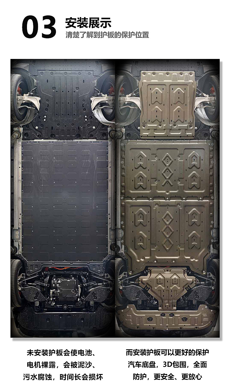 - Performance-Driven Design: Comprehensive five-piece set provides full underbody protection for the front motor, front battery, rear battery, rear motor, and storage box, safeguarding vital components from road debris and impacts.