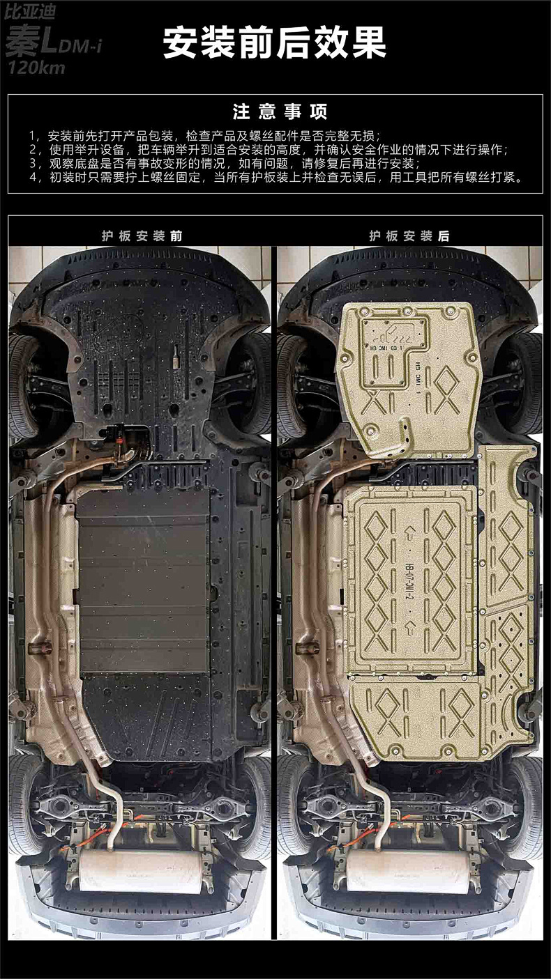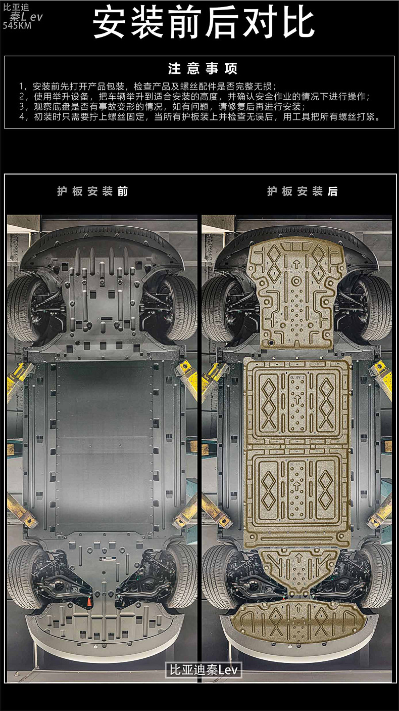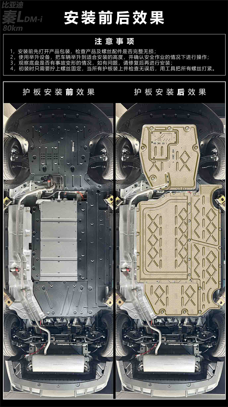 - Direct Fitment: A perfect replacement for BYD Qin L models from 2024 to 2025 (80KM/120KM DMI & 545KM EV versions) that require a full chassis underbody protection kit.