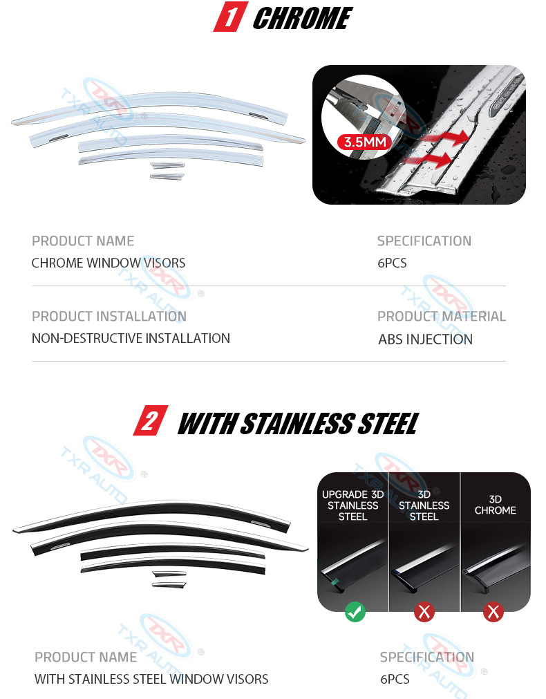 - Heavy-Duty Build: Crafted from durable, clear acrylic with integrated chrome trim, these window visors offer robust performance and a stylish accent to your vehicle’s appearance.