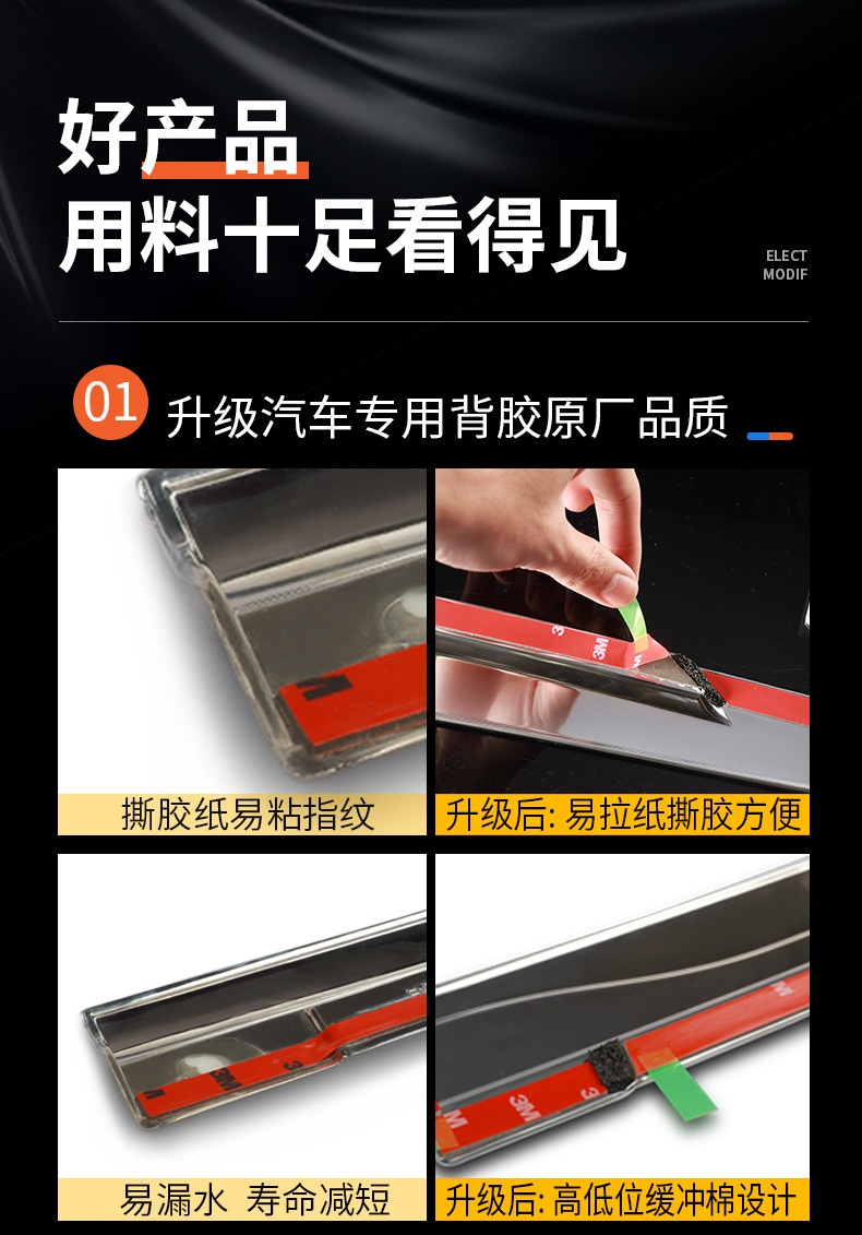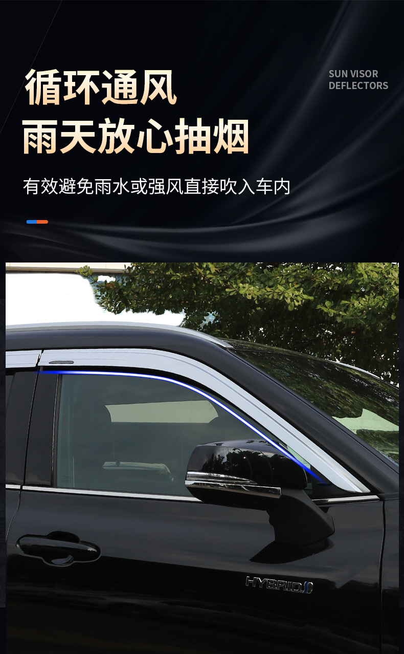 - Performance-Driven Design: Enhances driving comfort by diverting rain and wind away from windows, reducing wind noise and allowing for fresh air circulation, as depicted in the product image.
