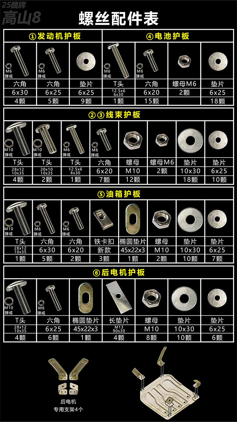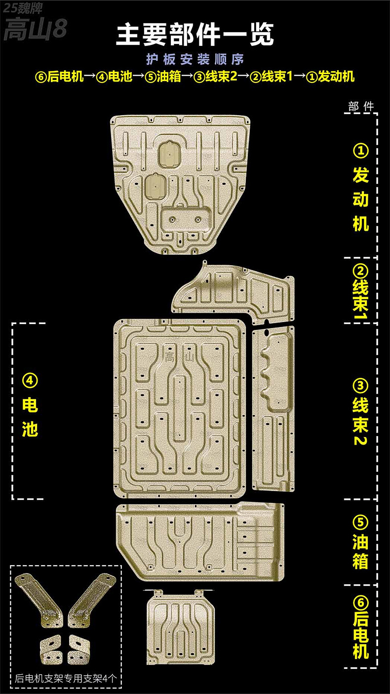 6 Pcs Underbody Chassis Armor Protection Plate for Gao Shan 8 New Energy 2024-2025