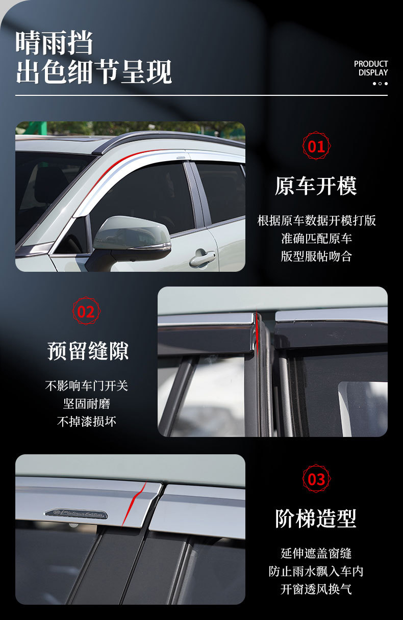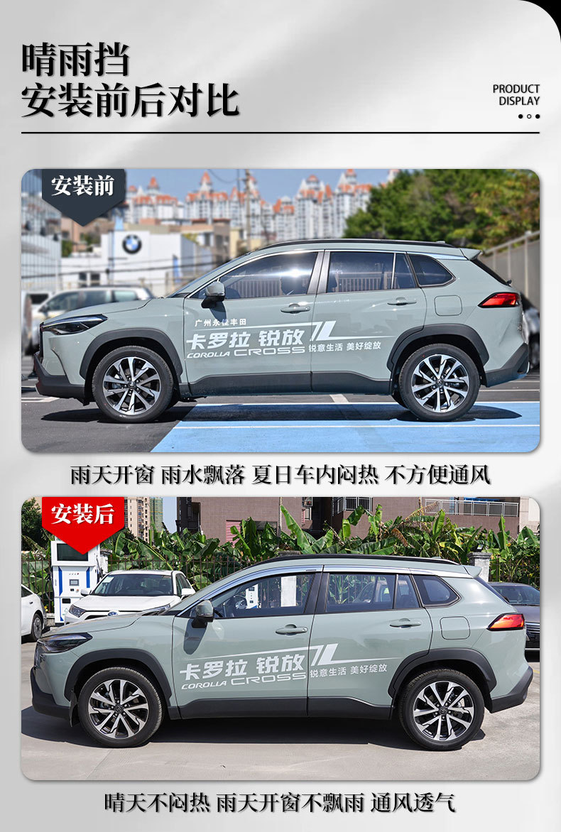 - Enhanced Driving Comfort: Allows for fresh air circulation while preventing rain and wind from entering, reducing fogging and improving visibility, as indicated by the rain guard design.