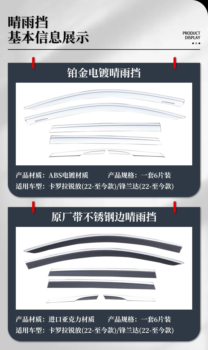 6Pcs Platinum Plated Window Visor Rain Guard for Toyota Corolla Cross Frontlander 2022-Present