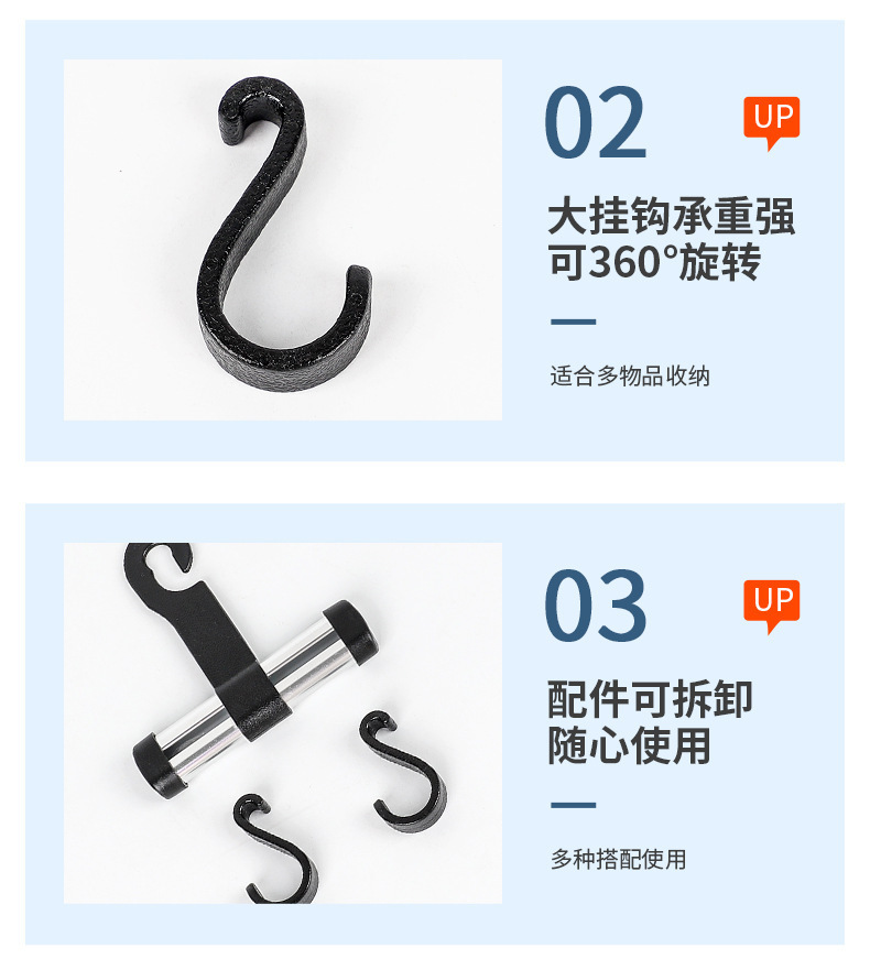 - Space-Saving Design: Features a dual-end, short hook design that maximizes storage efficiency behind your car seats, keeping your car interior tidy and clutter-free while maintaining original size aesthetics.