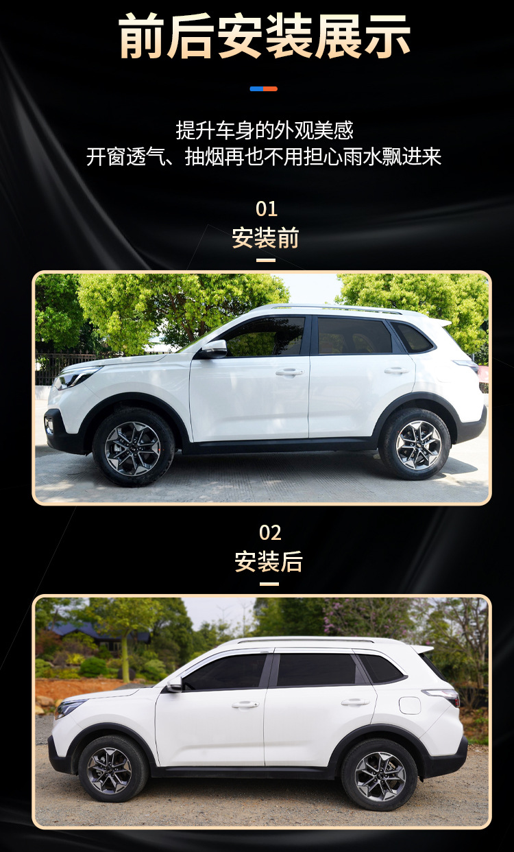 - Performance-Driven Design: Enhances driving comfort by allowing fresh air circulation while preventing rain and wind from entering, reducing glare for improved visibility.