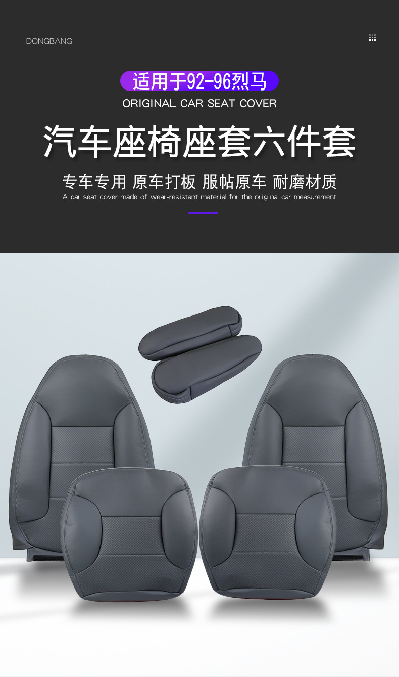 6pcs Leather Car Seat Covers Full Set for 1992-1996 Ford Bronco Front Seat Backrest Side Armrest