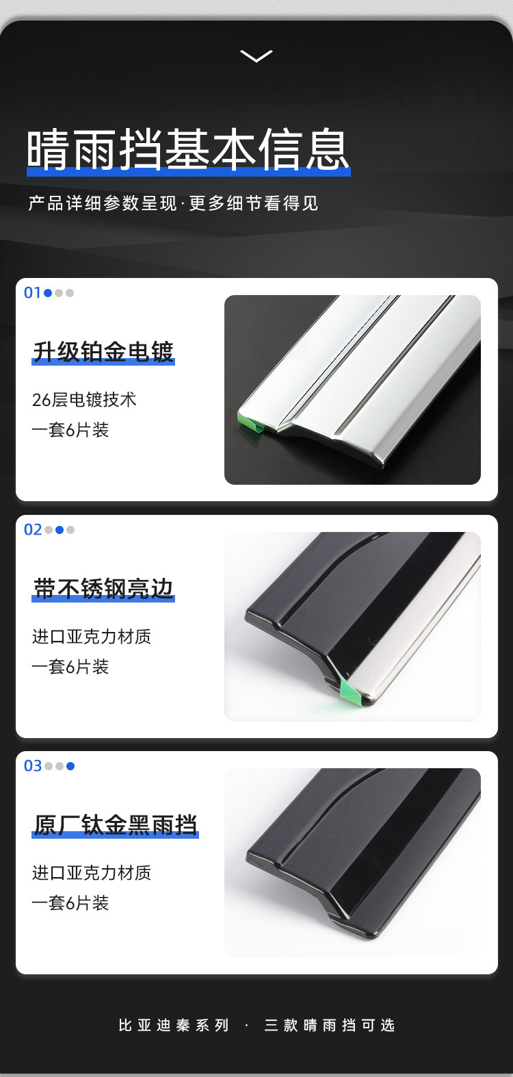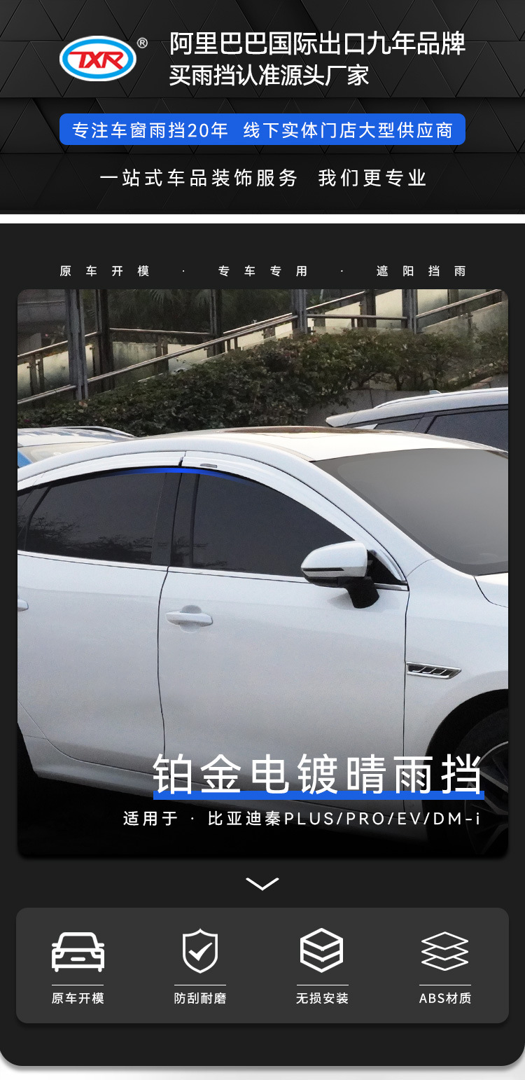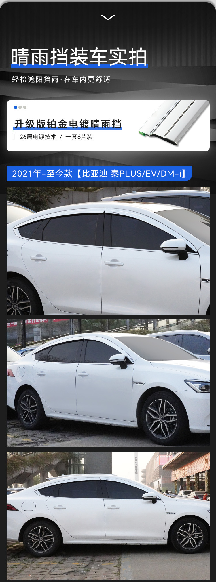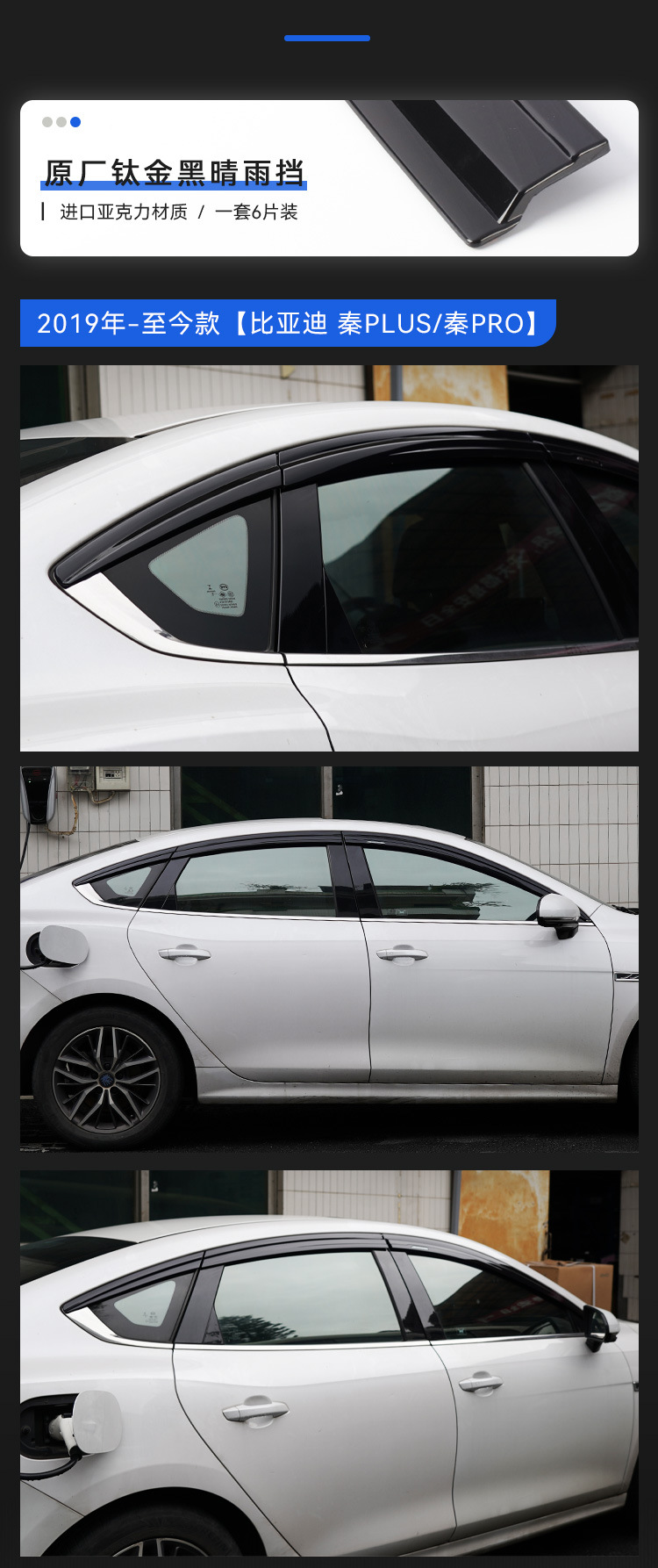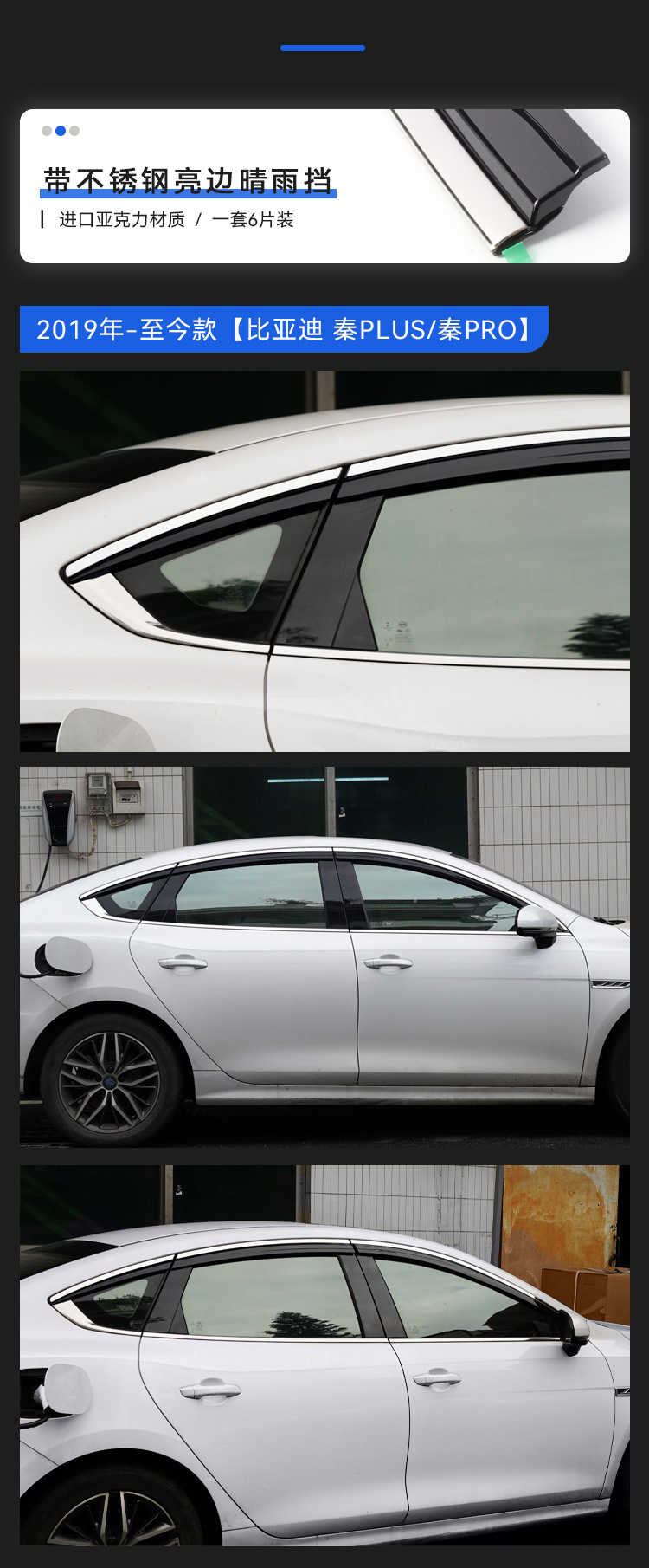 6pcs Platinum Electroplated Window Visors Rain Guards for BYD Qin Pro 2019-Present, Qin Plus 2020-Present