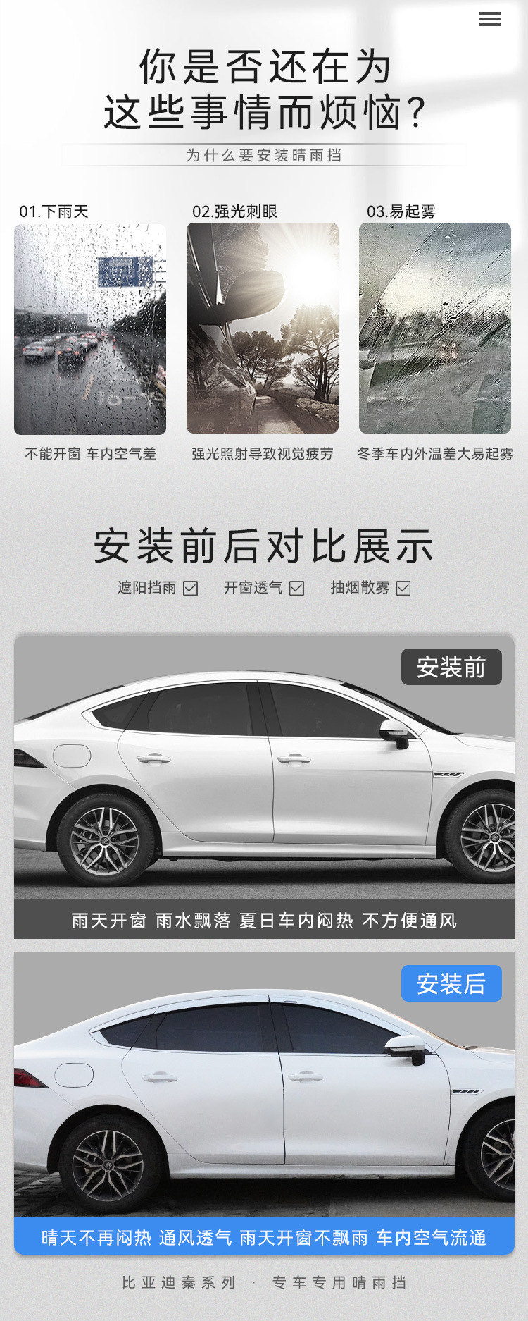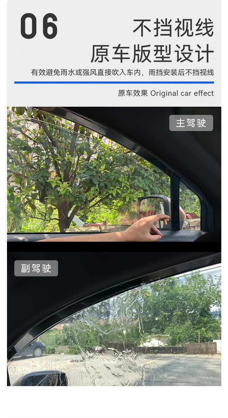 - Performance-Driven Design: Designed to deflect rain, snow, and wind, allowing for window ventilation and reducing fogging, improving driving comfort.