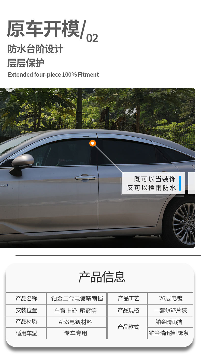 6pcs Platinum Plated Rain Visor Window Deflector for Toyota Avalon Hybrid 2019-Present