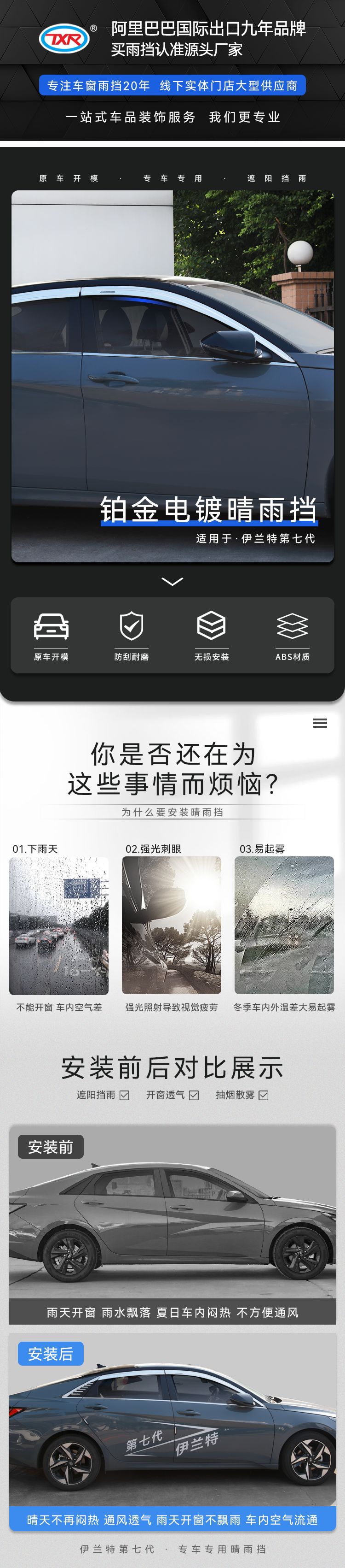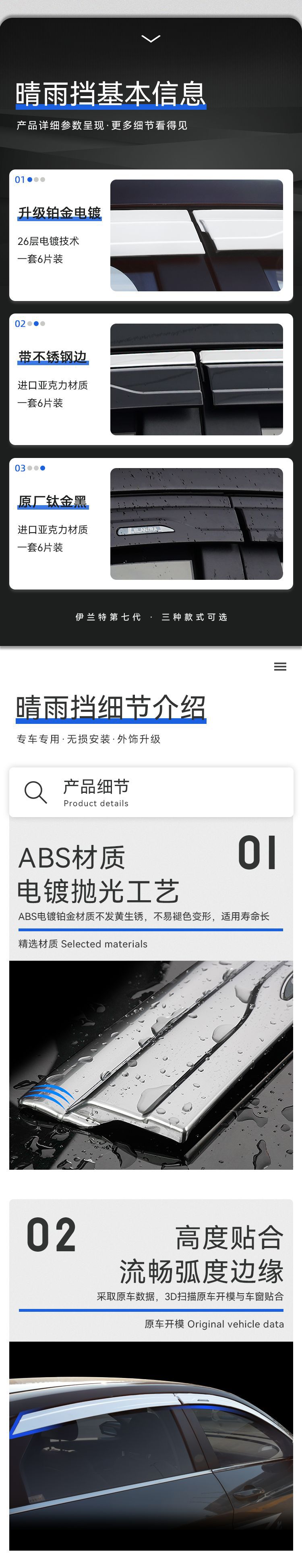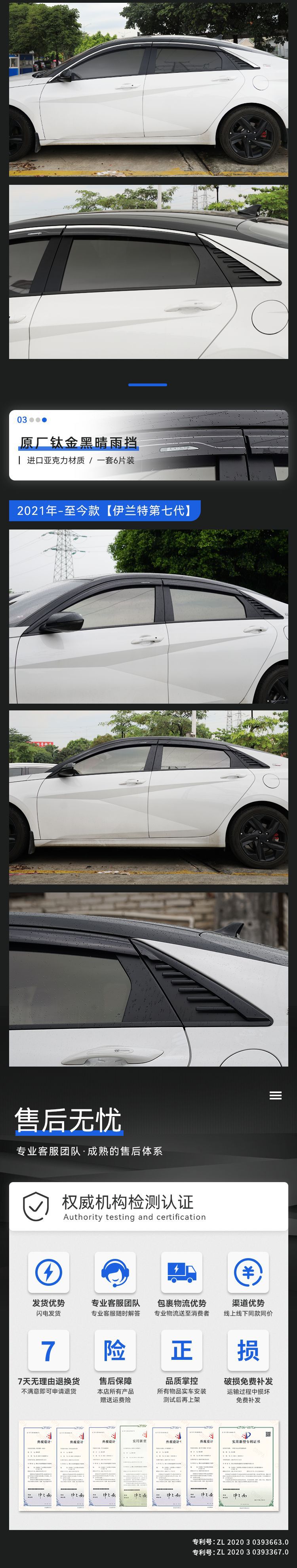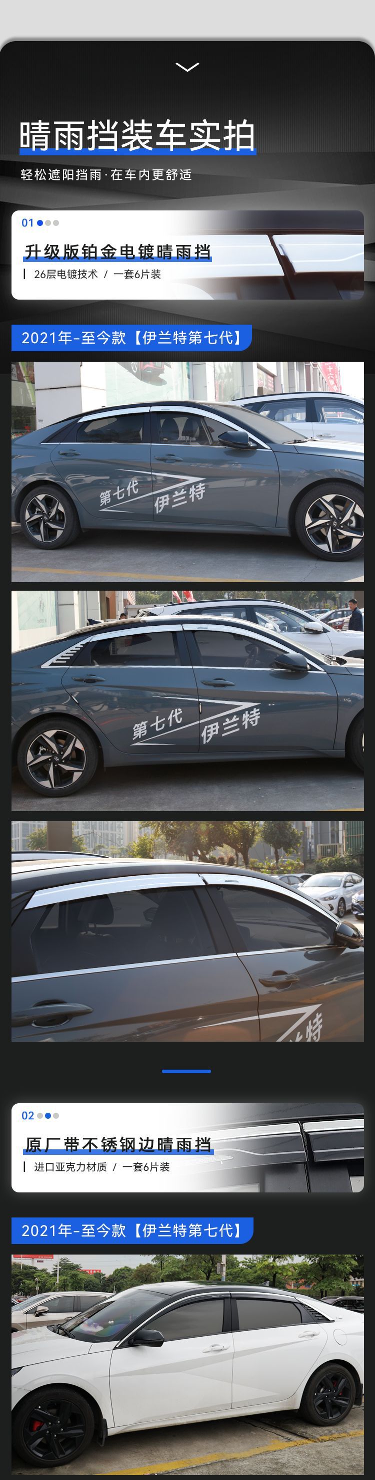 6pcs Platinum Plated Window Visors Rain Guards for Hyundai Elantra 2021