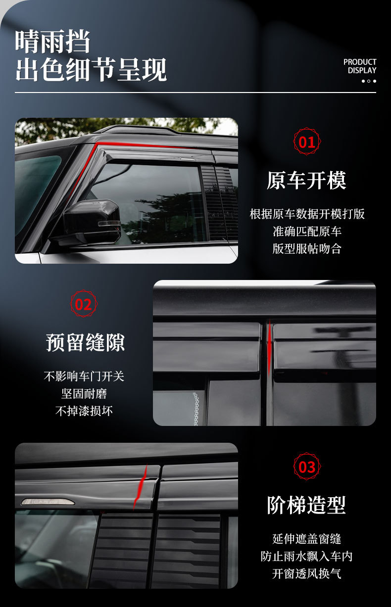 - Performance-Driven Design: Enhances driving comfort by deflecting rain, wind, and debris, allowing for fresh air circulation without compromising interior protection.