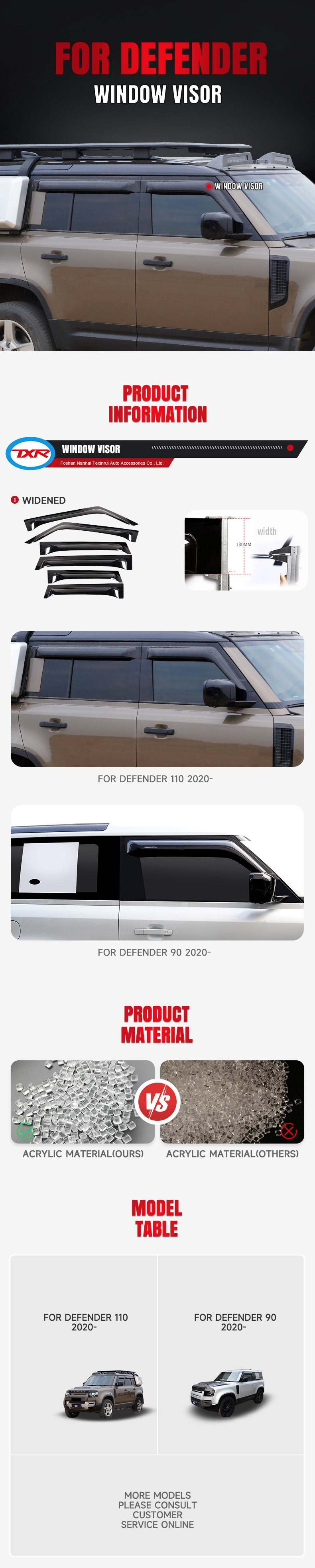 6pcs Window Deflectors Rain Guards for Land Rover Defender 110/90 2020-Present