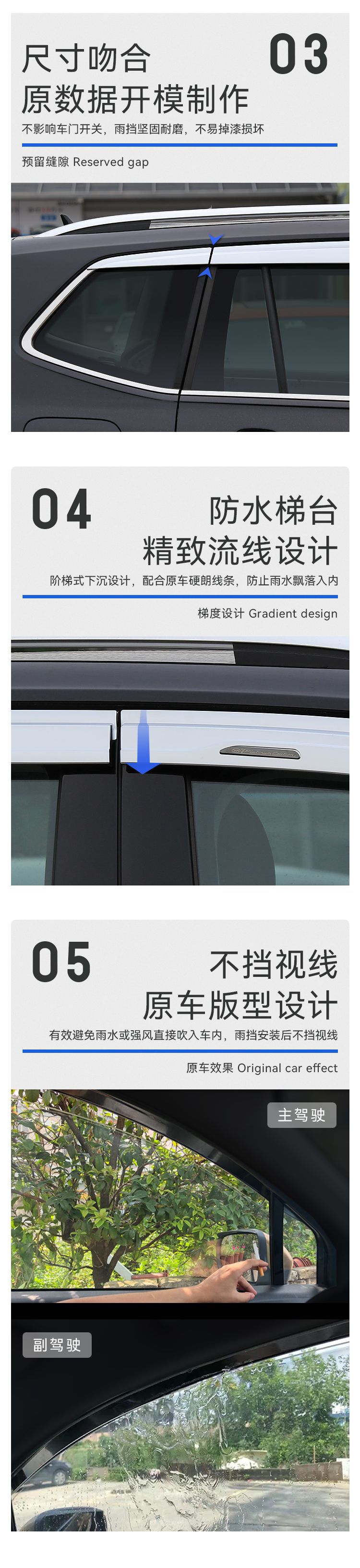 - Performance-Driven Design: Designed for effective rain and wind deflection, allowing windows to be partially open for ventilation without direct exposure to elements, as shown.
