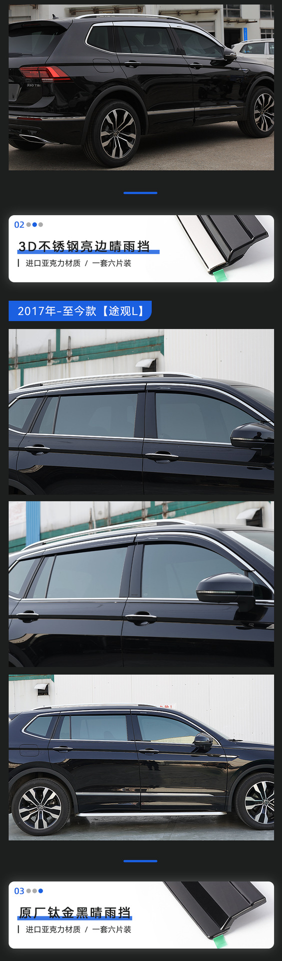 6pcs Window Deflectors Rain Guards for Volkswagen Tiguan L 2016-2024