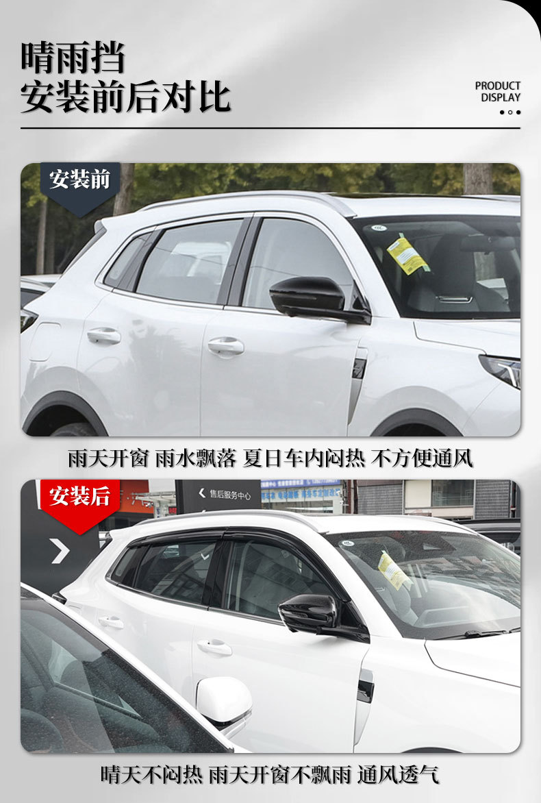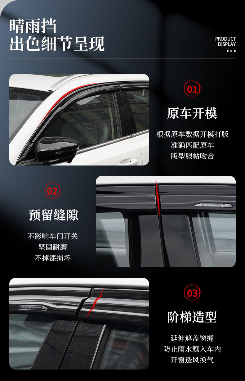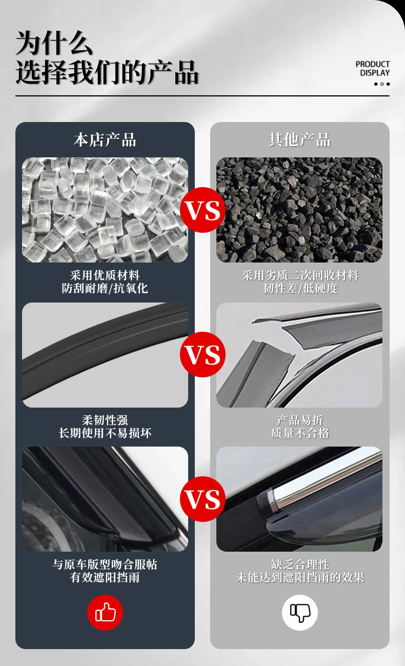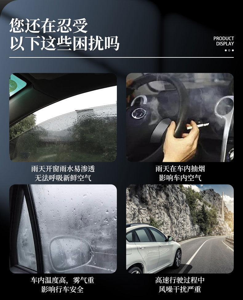 - Performance-Driven Design: Enhances driving comfort by preventing rain and snow from entering the car and reducing wind noise, as shown in the image.