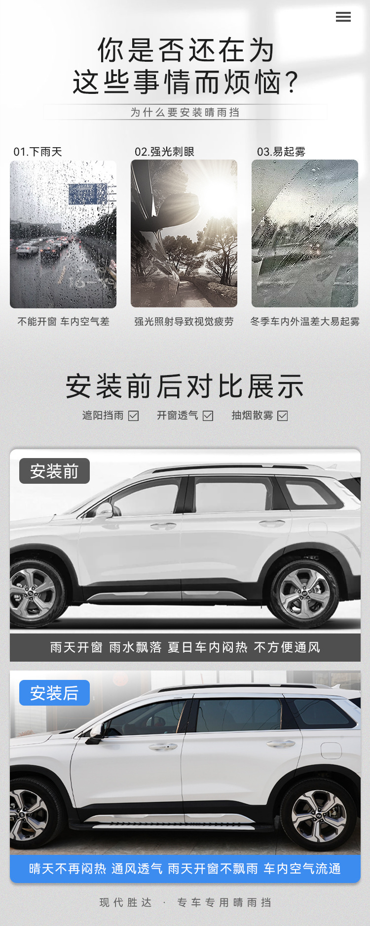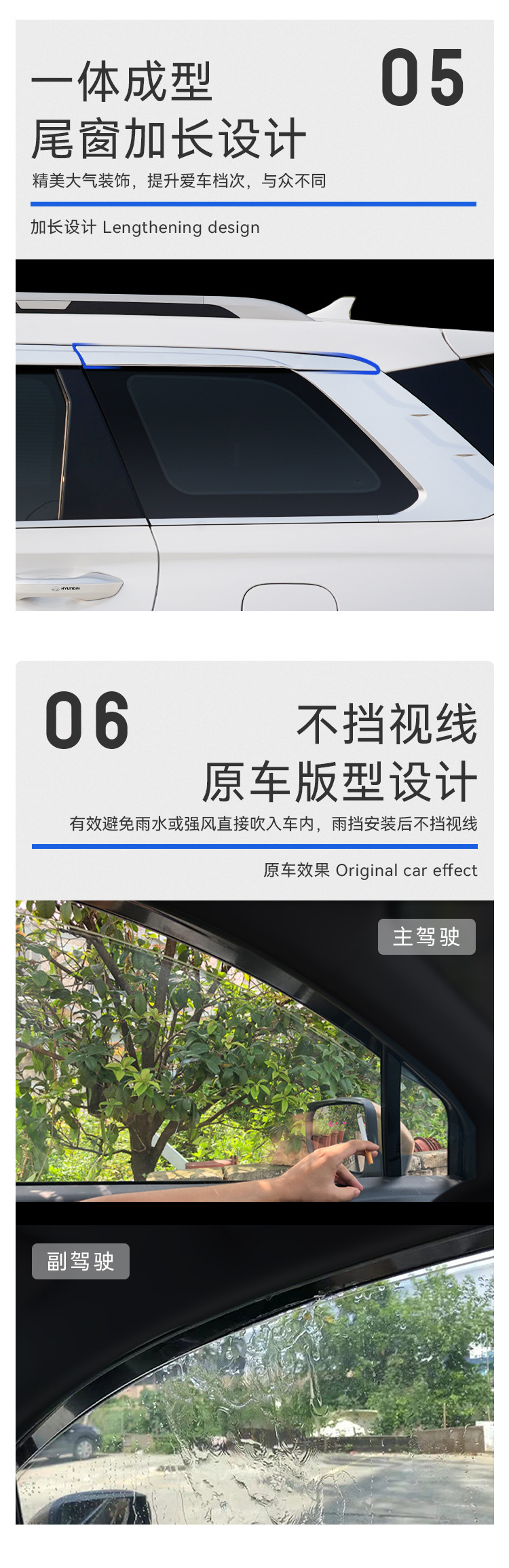 - Performance-Driven Design: Enhances airflow and reduces wind noise while driving, providing a more comfortable and dry cabin experience during rain.