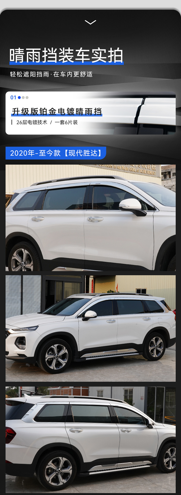 6pcs Window Visors Chrome Rain Guards for Hyundai Santa Fe 2020-Present