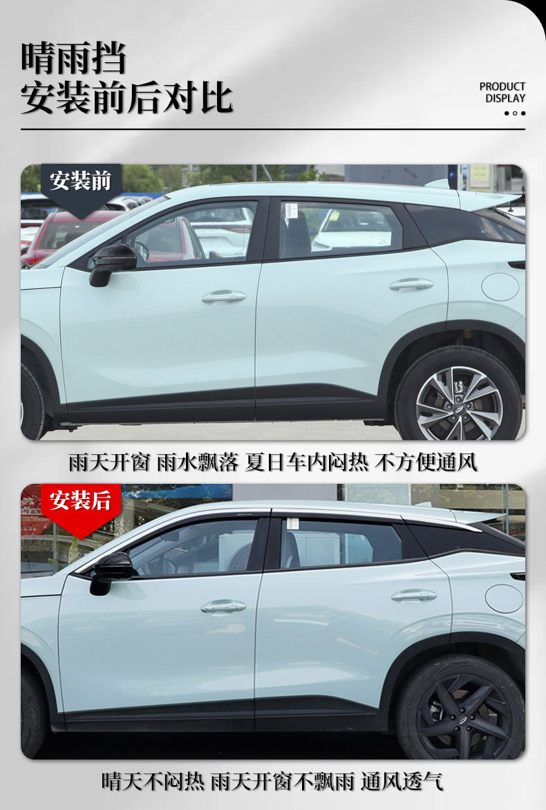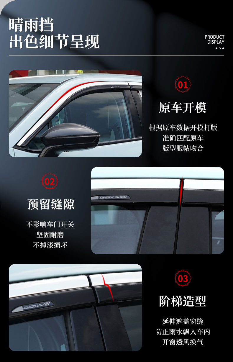 - Enhanced Functionality: Allows for window ventilation while keeping rain and wind out, improving driving comfort and reducing window fogging, as indicated by the product’s design.