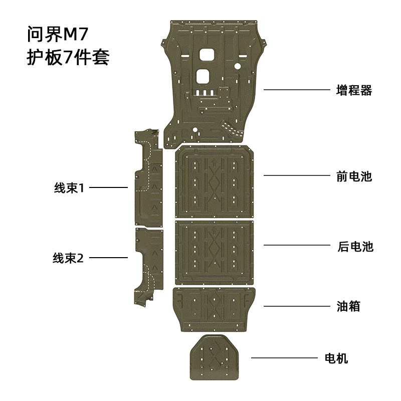 - Direct Fitment: A full underbody protection kit specifically designed for the AITO M7, compatible with 2022-2024 models. It replaces OE parts and ensures precise fitment.