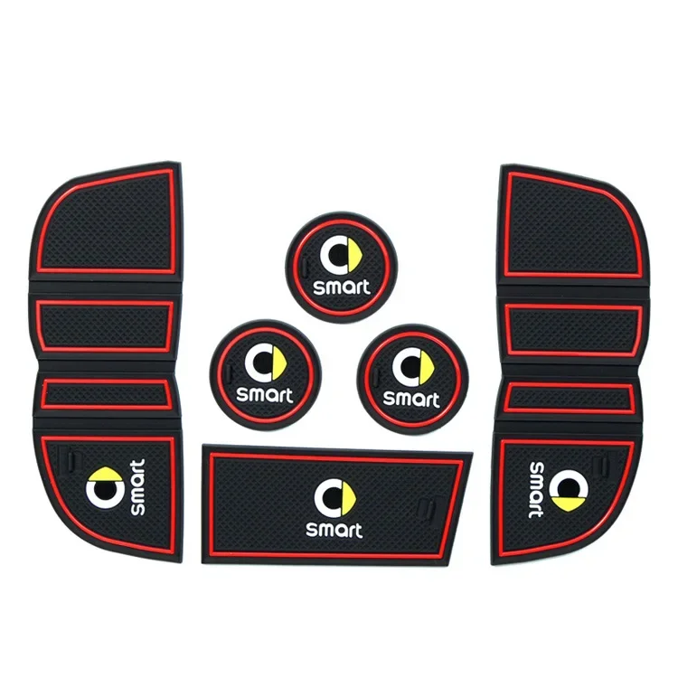 7pcs Black & Red PVC Door Slot Mats Cup Coasters Center Console Storage Box Mats for Smart Fortwo 2015-2017