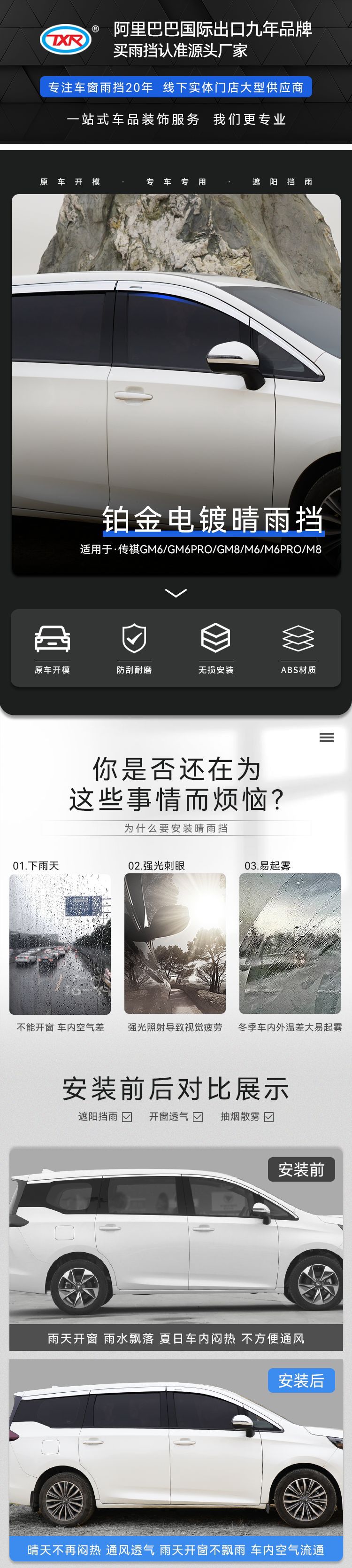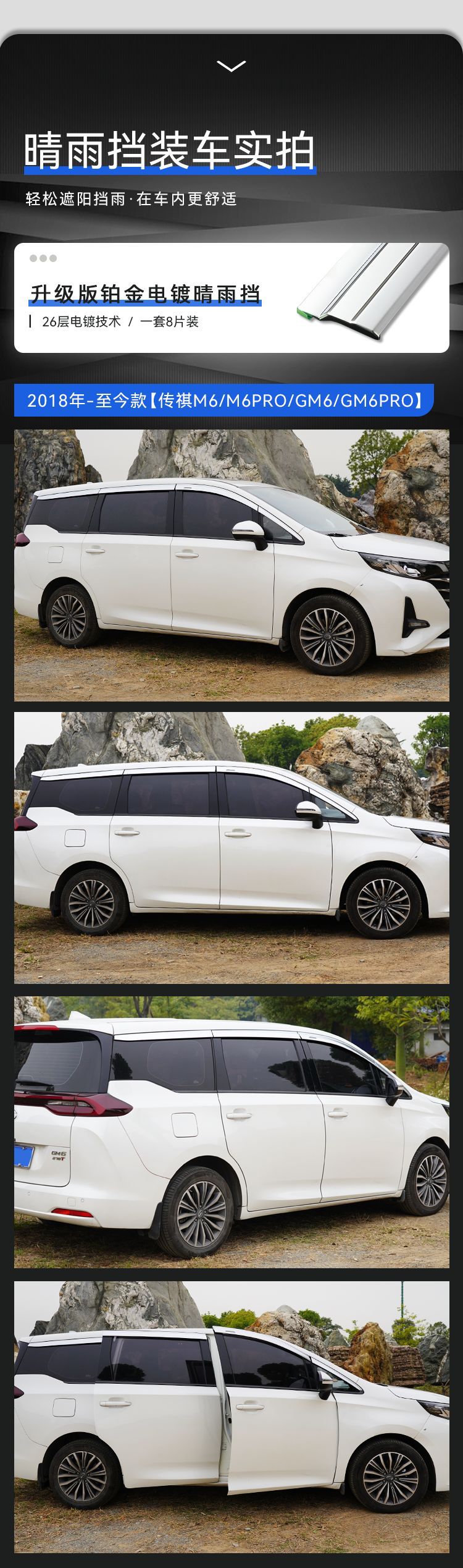 8pcs Plated Platinum Window Visors for GAC Trumpchi GM6 GM8 M6 M8 2017-Present