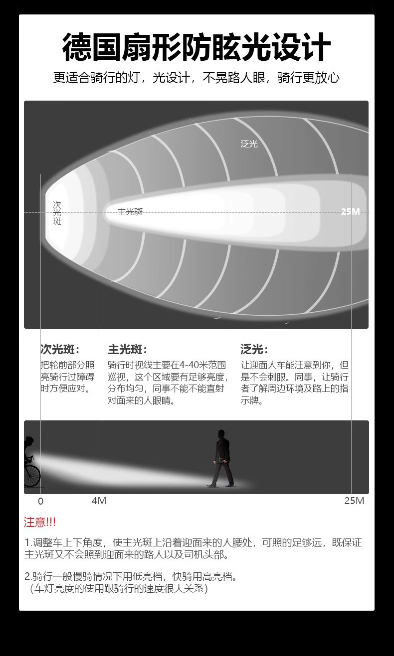 - Performance-Driven Design: Features a 900LM output with anti-glare technology, offering both near and far beam options for enhanced night cycling safety and visibility.