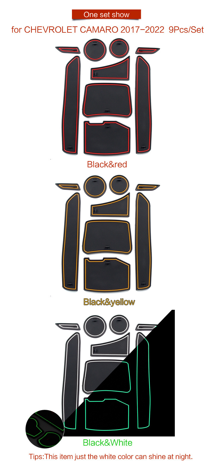 - Complete Package: Includes 9x interior anti-slip mats, exactly as pictured. Please verify fitment details for Chevrolet Camaro 2017 before purchasing.