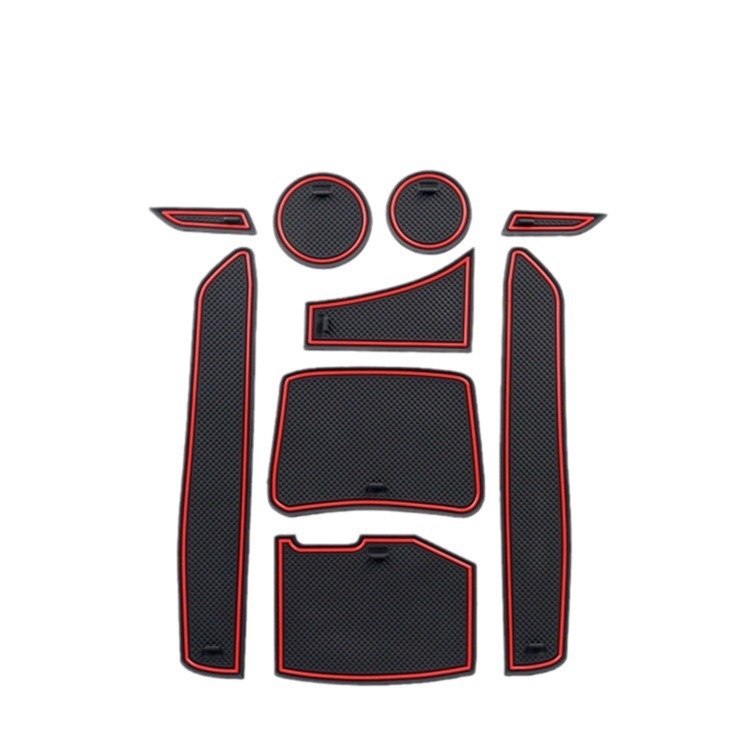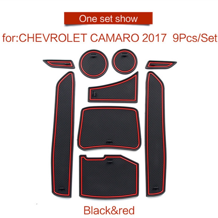 9Pcs Black & Red Car Interior Door Slot Mat Cup Holder Storage Box Pad for CHEVROLET CAMARO 2017